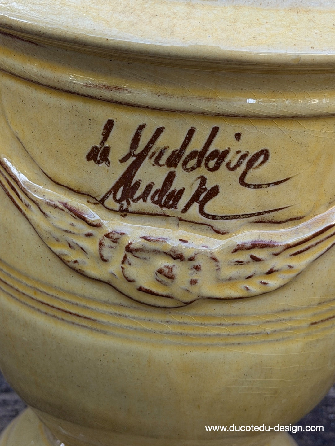 Magnifique vase d'Anduze émaillé jaune