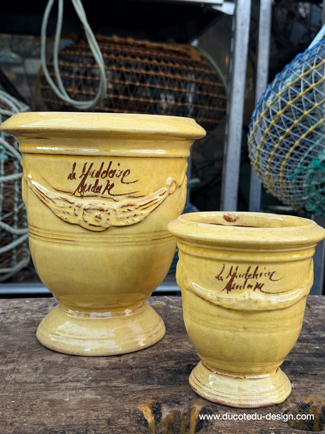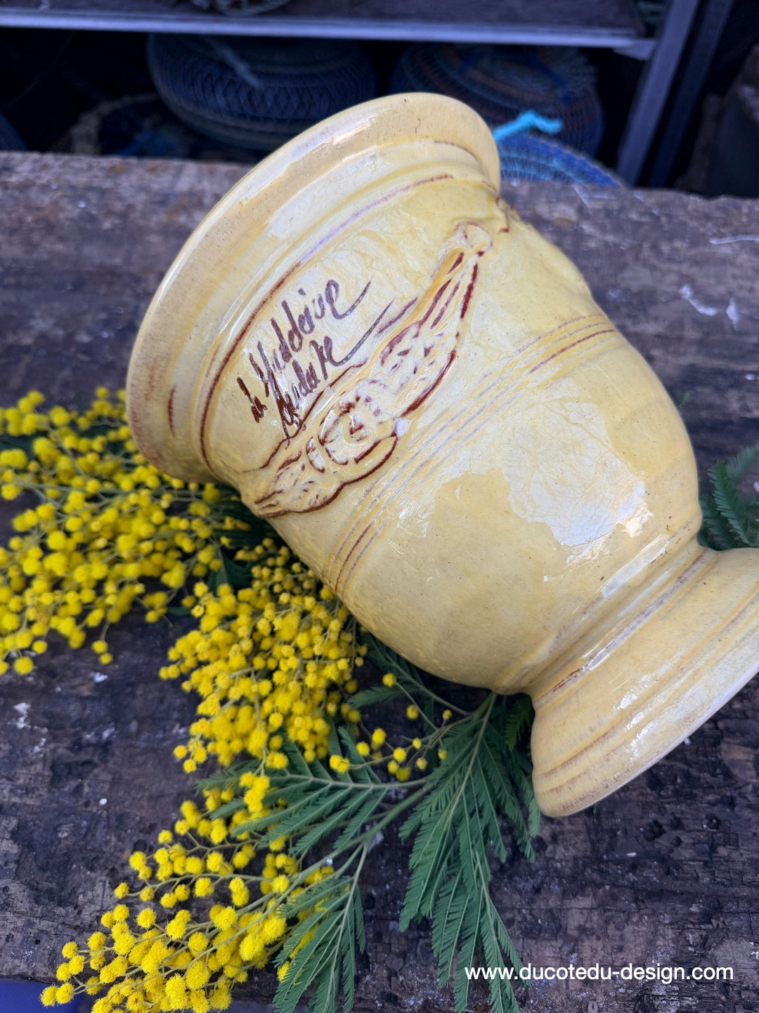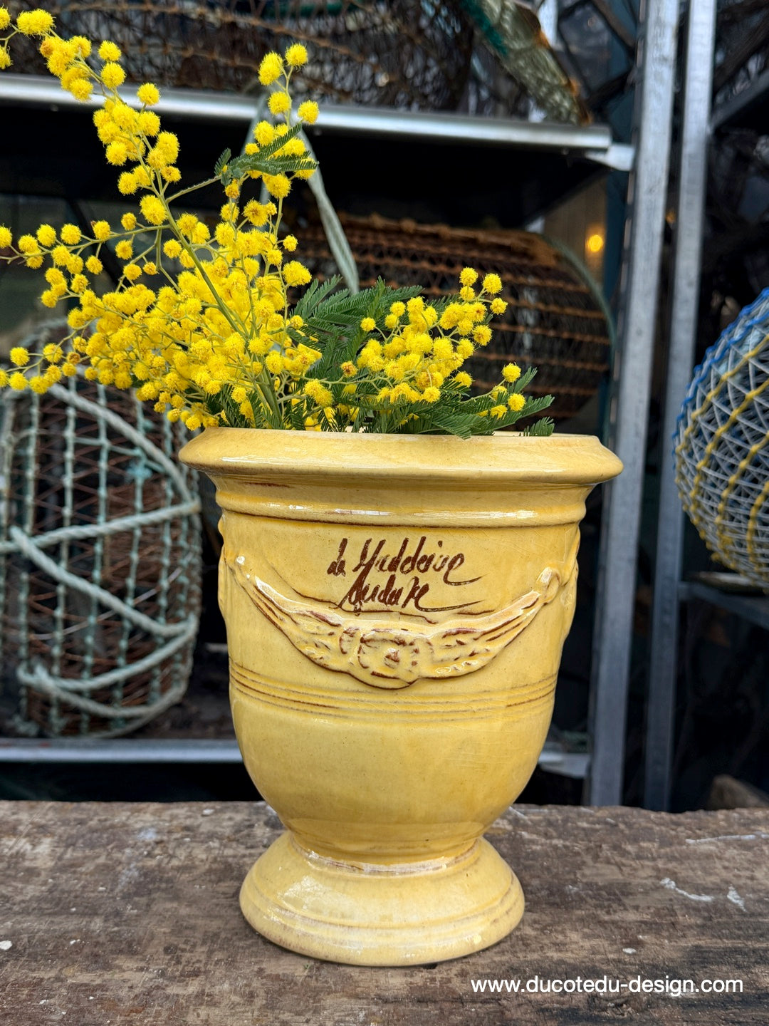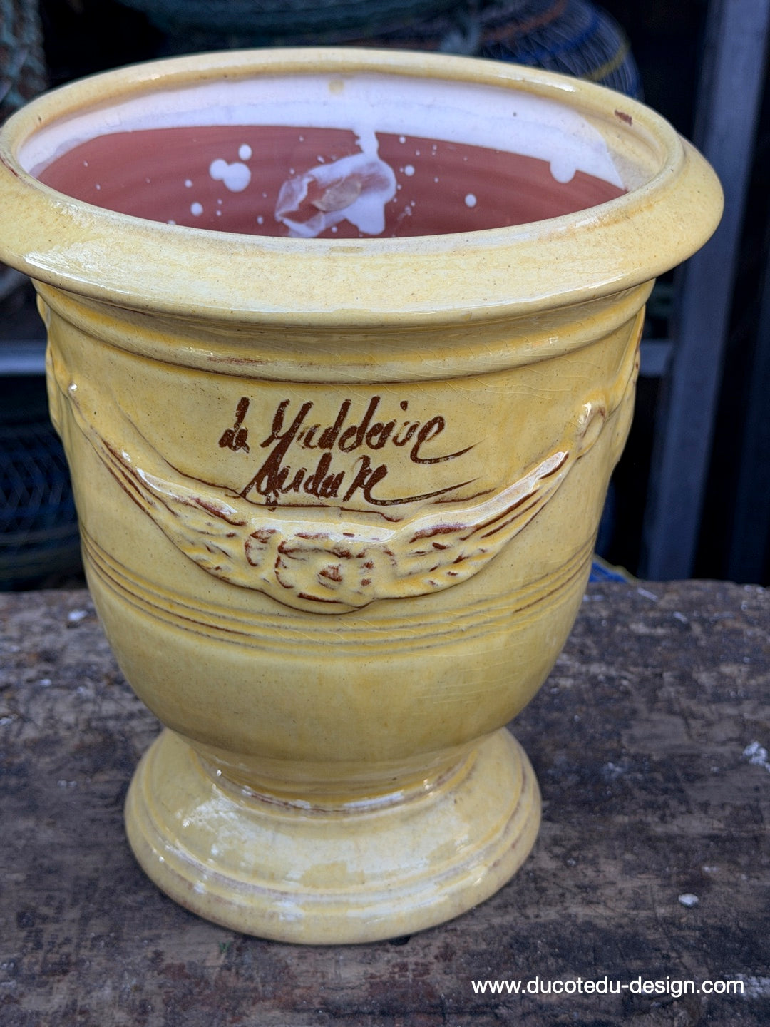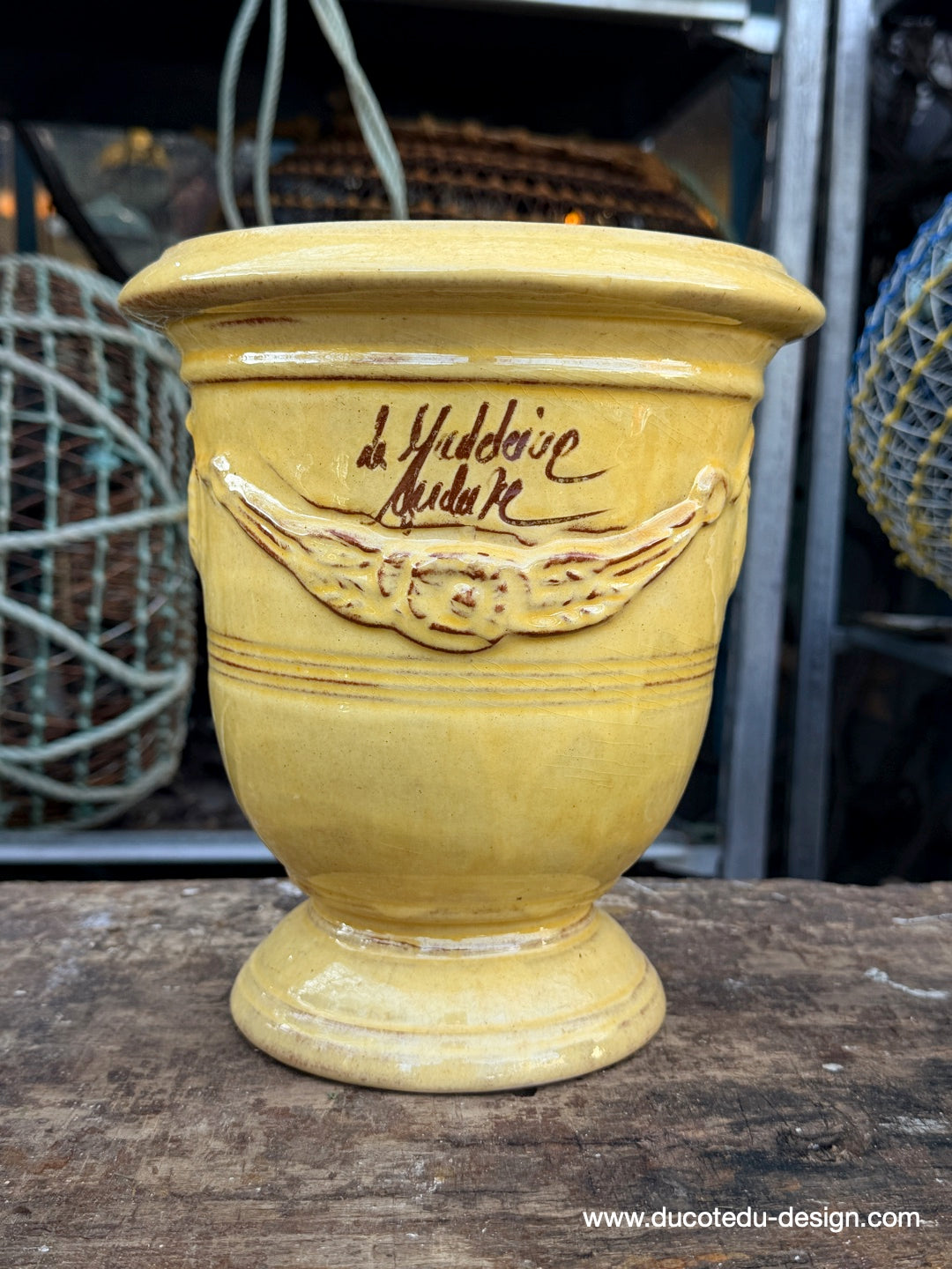 vase d'Anduze emaillé traditionnel jaune