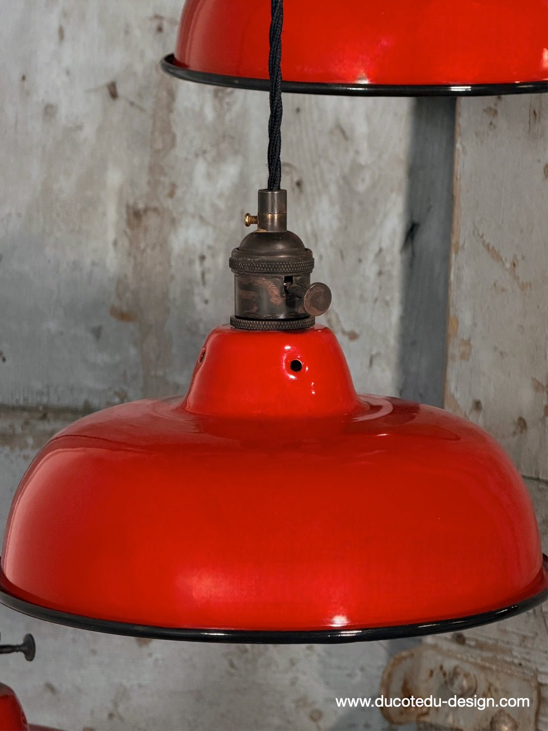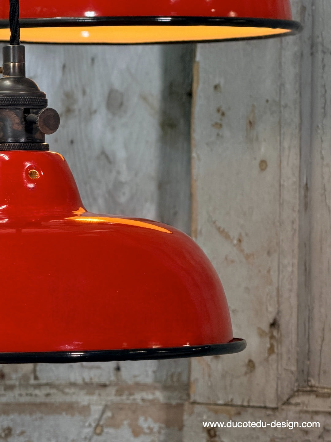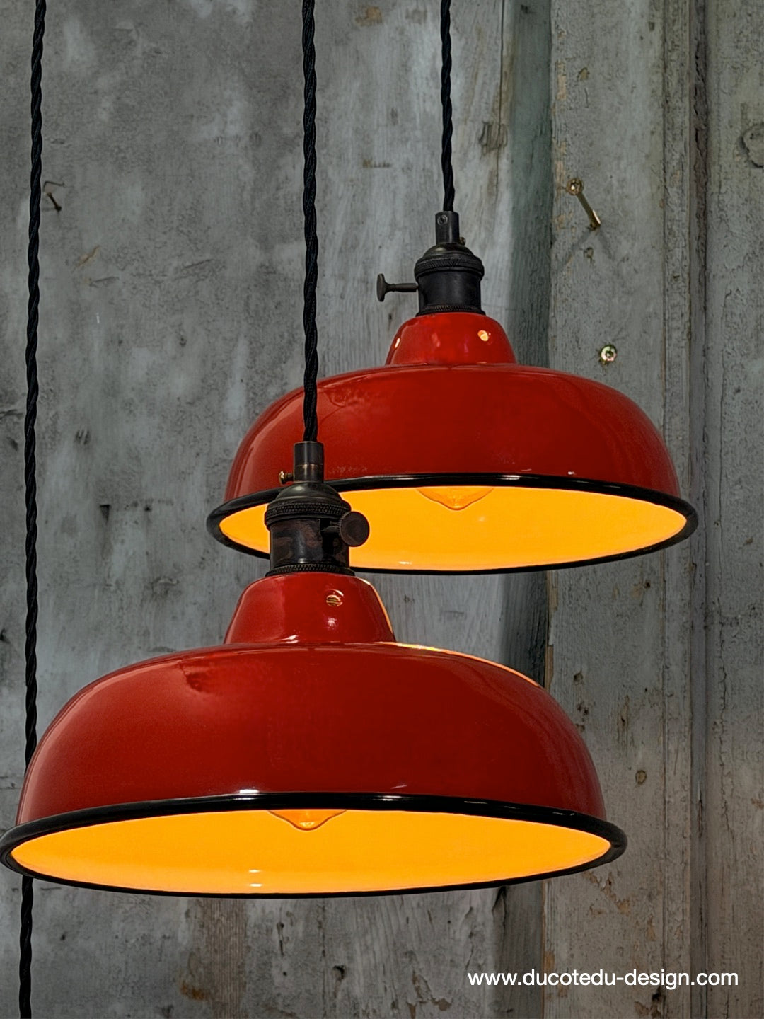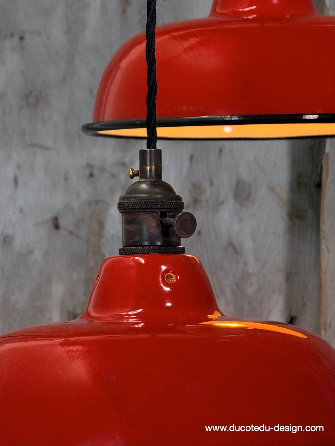 Suspension, lampe industrielle en tôle émaillée rouge – luminaire abat jour atelier