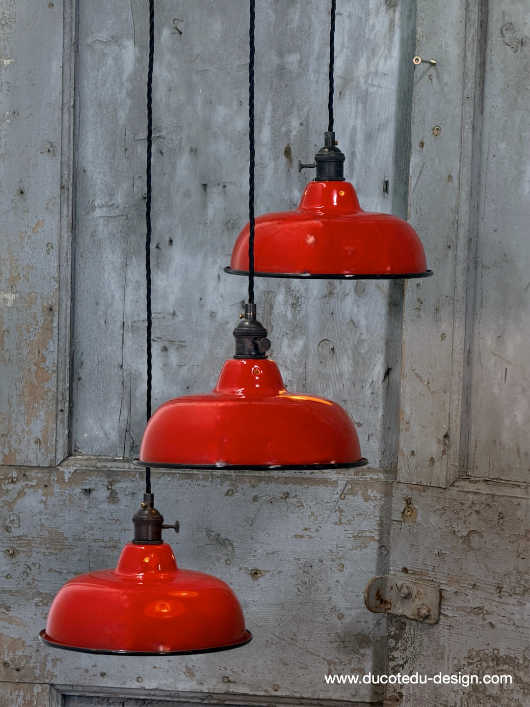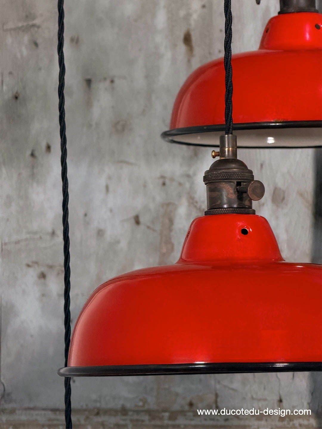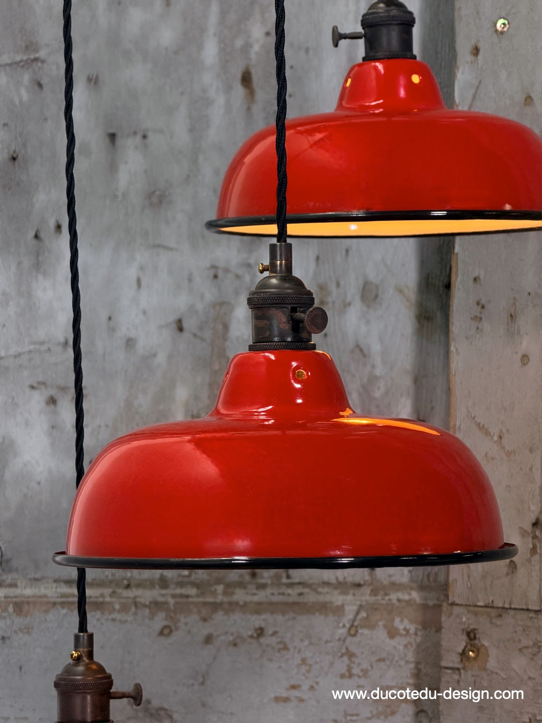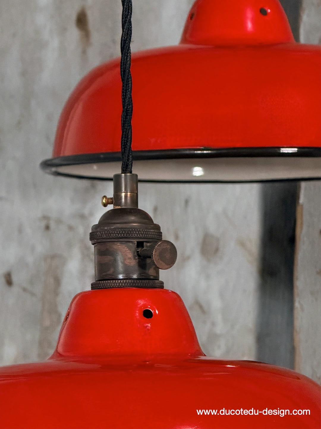 Suspension, lampe industrielle en tôle émaillée rouge – luminaire abat jour atelier