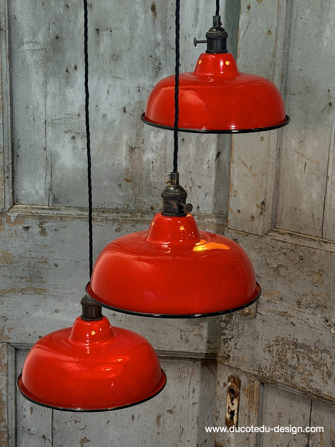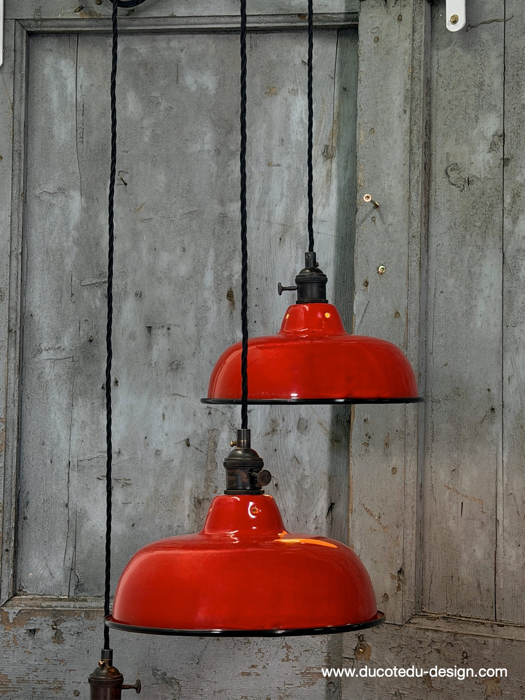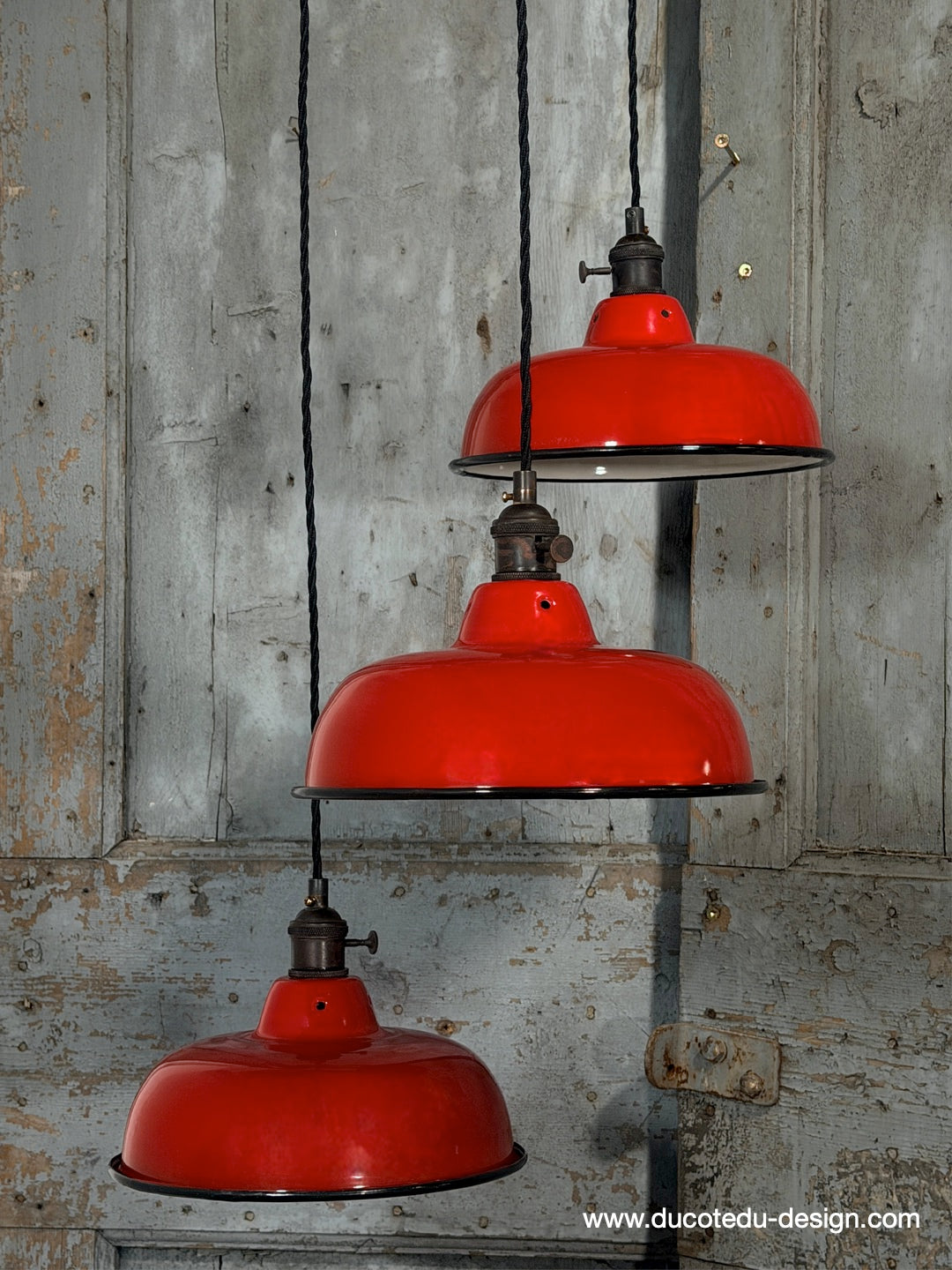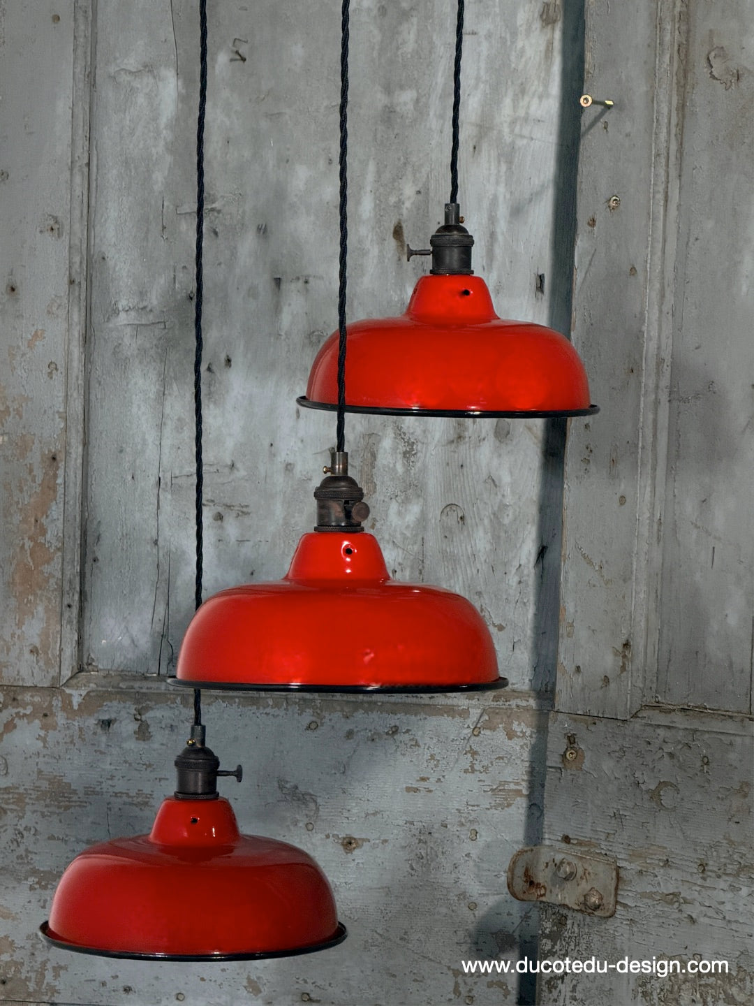 Suspension, lampe industrielle en tôle émaillée rouge – luminaire abat jour atelier