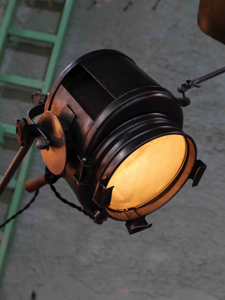 This entirely original Cremer Paris cinema projector dates from the 1950s/60s. It features a standard E27 socket, a Fresnel lens, and the option to use a bulb of your choice. It operates on 220V and is very stable thanks to its adjustable giraffe-style cinema stand, which can be raised to a height of 2.5 meters.