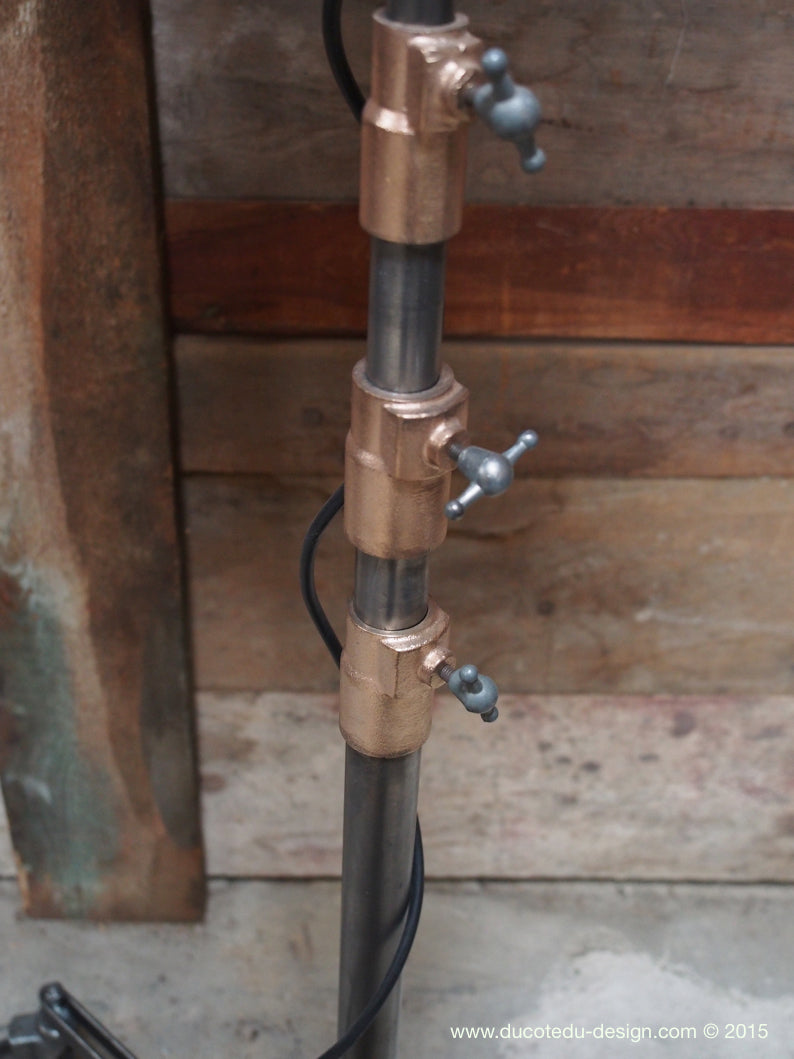Originally rated at 2000 watts, it has been rewired and fitted with a standard D22 socket, allowing you to use any bulb you choose. It operates on 220V and is very stable thanks to its tall tripod base.