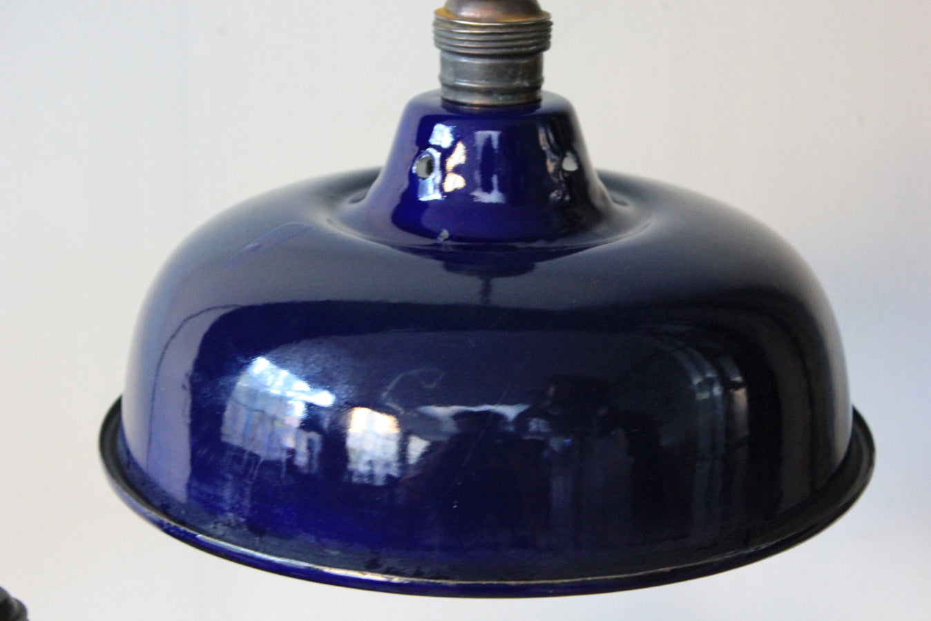 enameled lampshade for industrial lamp, midnight blue