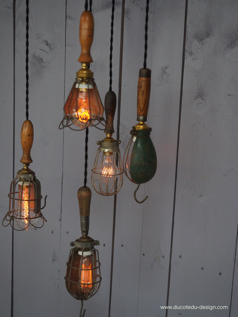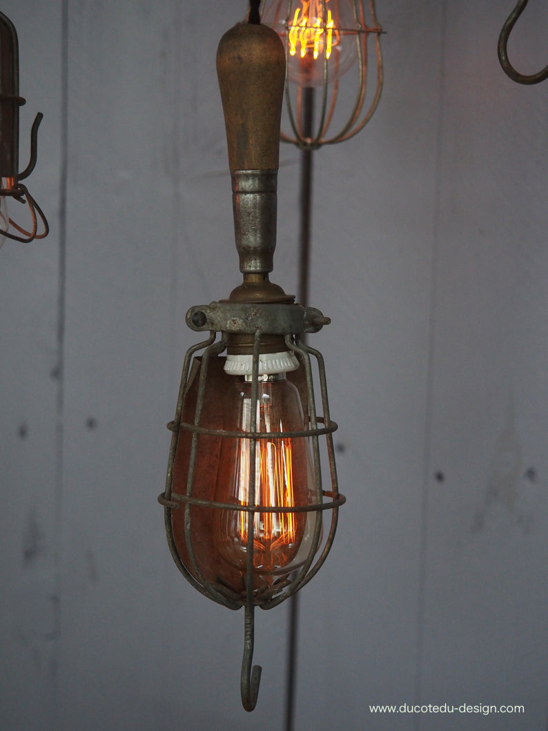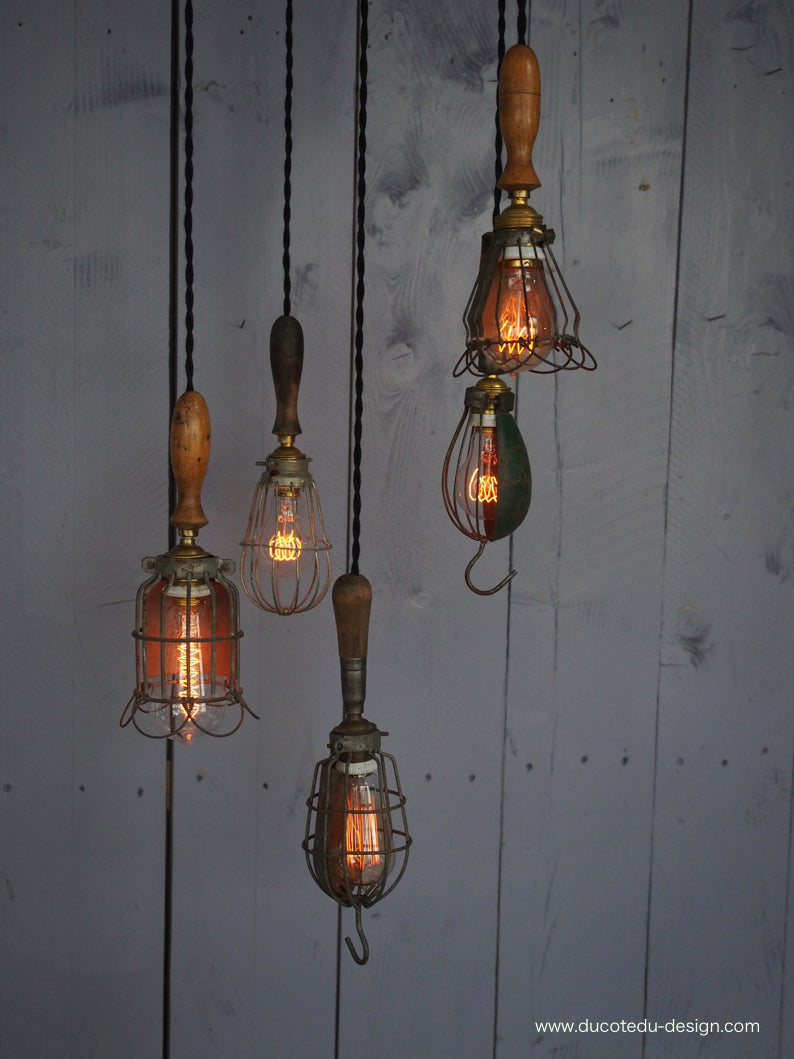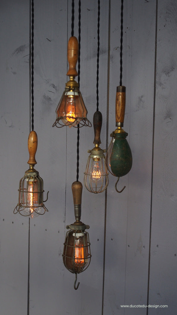 Set of 5 industrial portable work lights from the USA, used in New York cellars