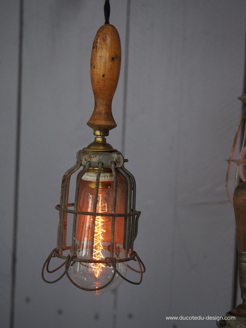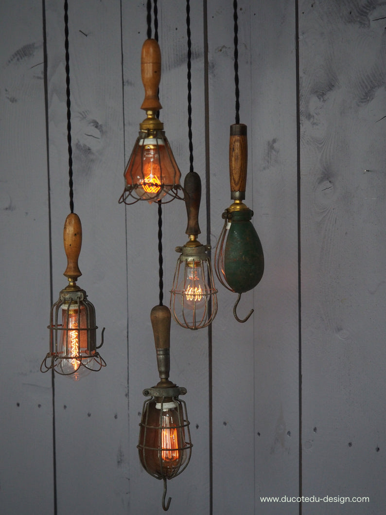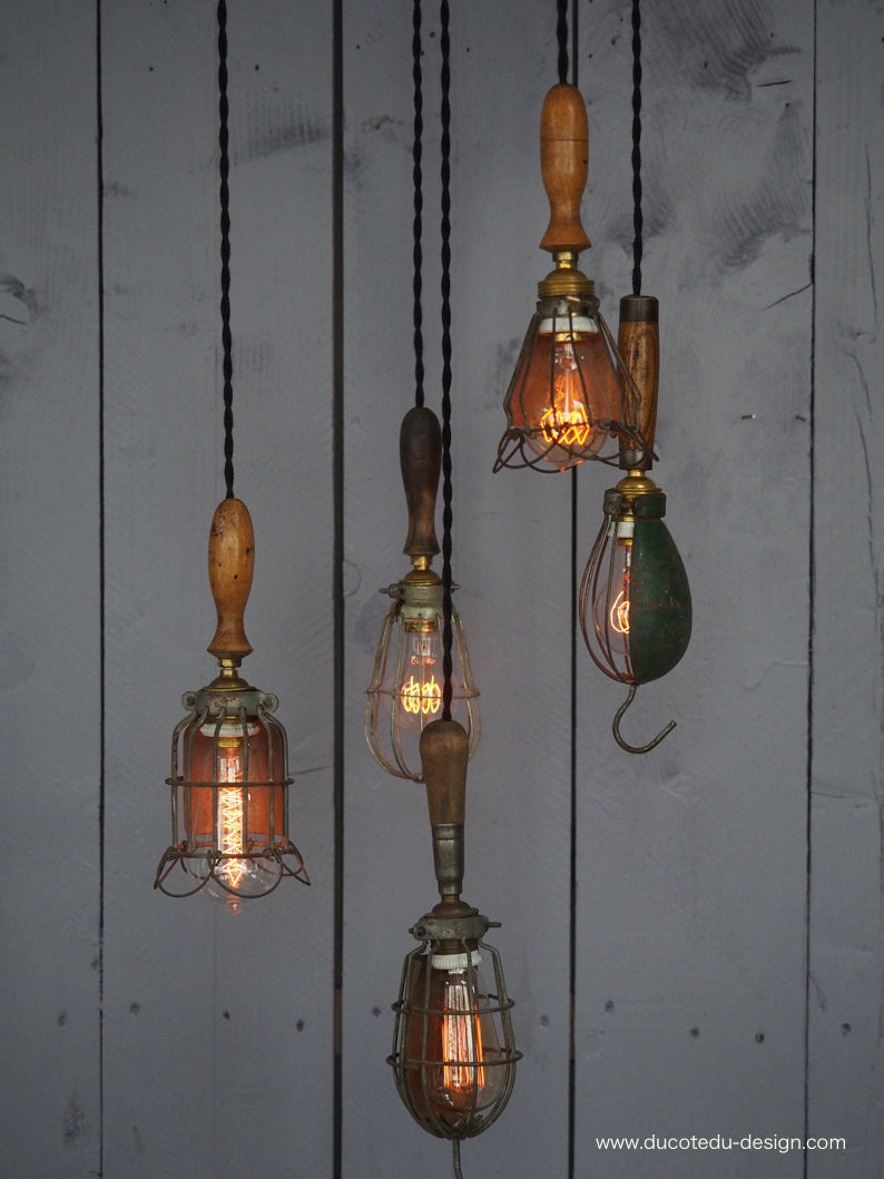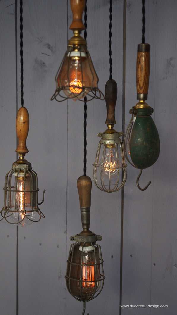 Set of 5 industrial portable work lights from the USA, used in New York cellars