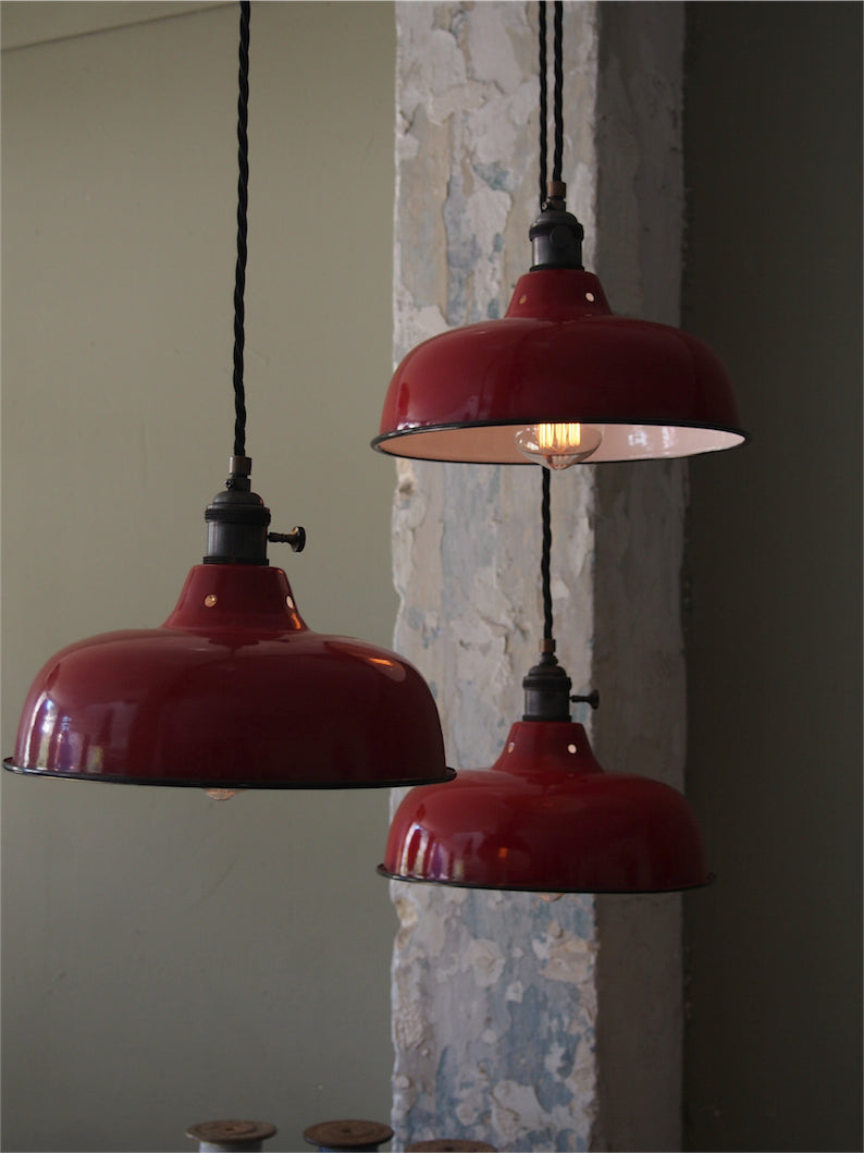 abat jour emaille lampe industrielle rouge