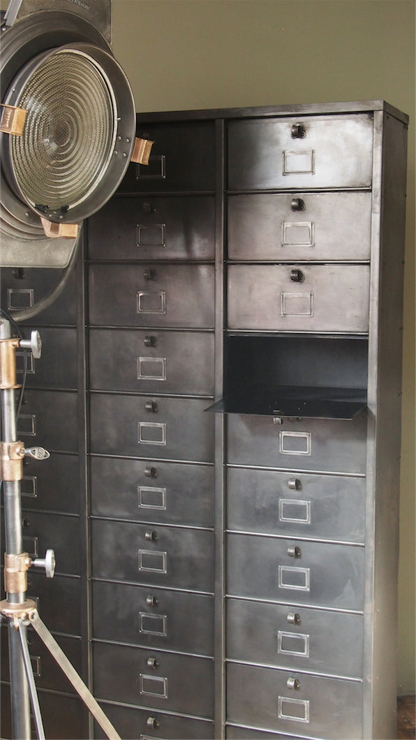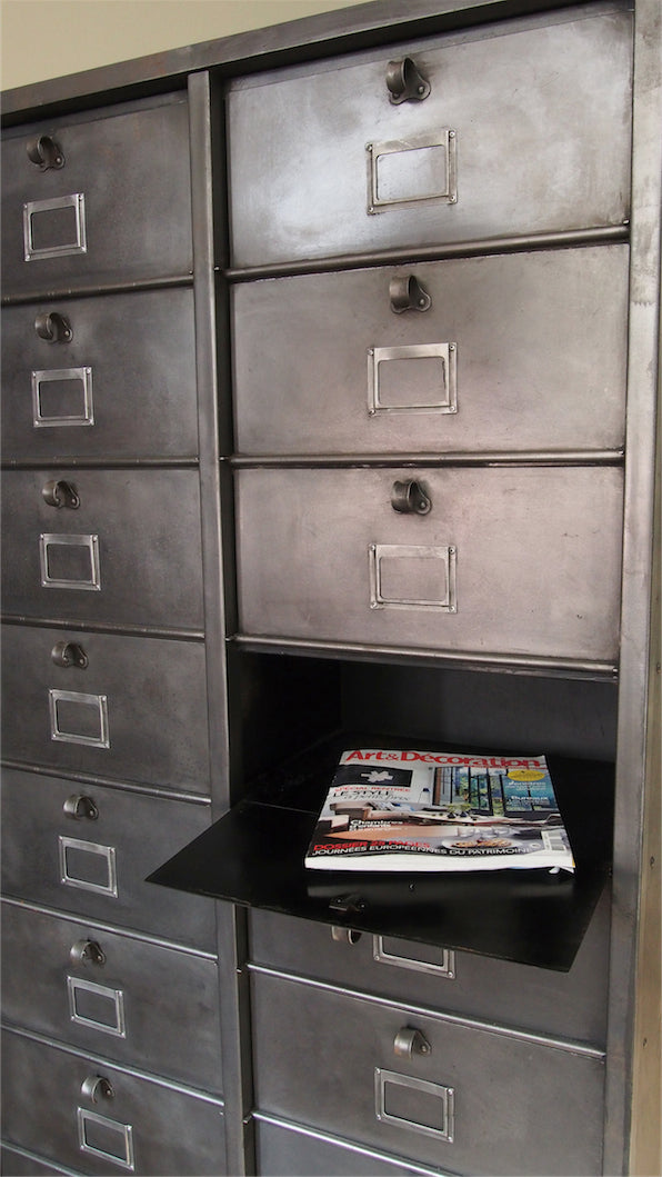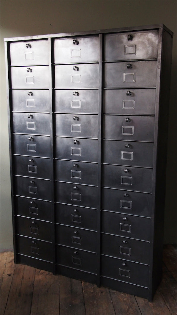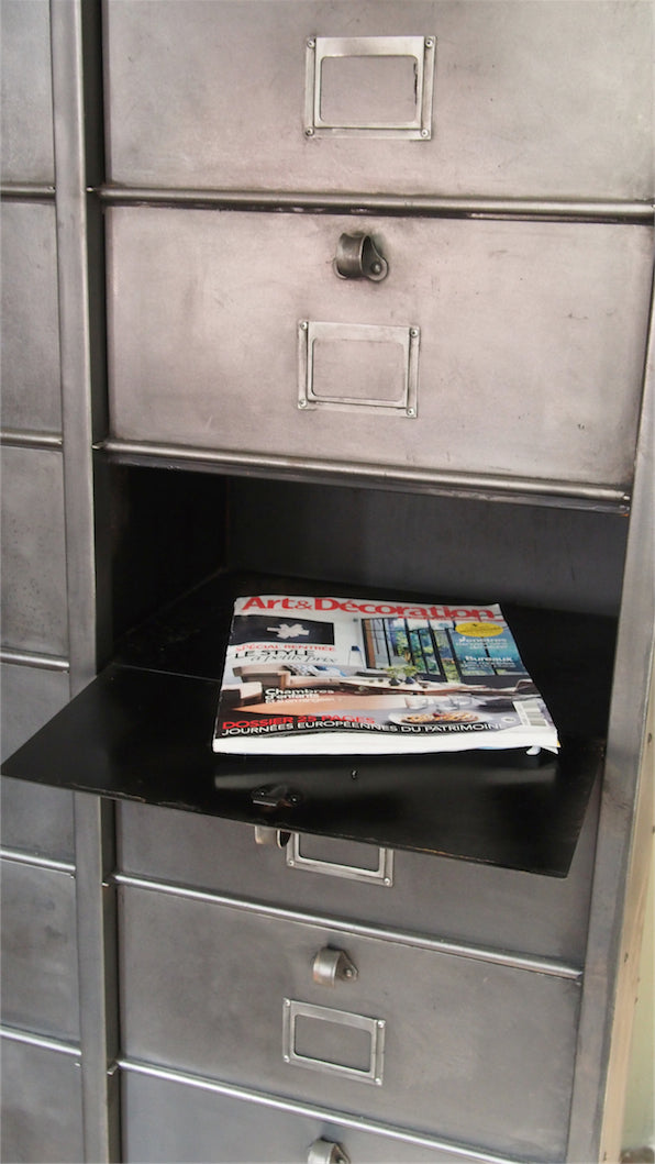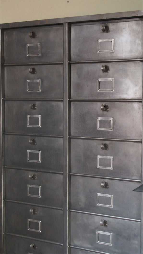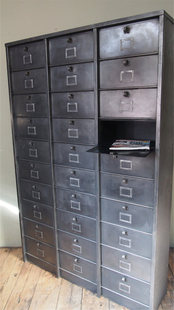 ancien grand meuble 30 casiers industriel a clapet strafor 1950