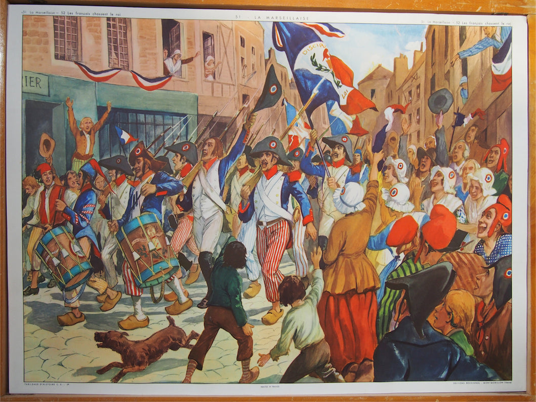 Ancienne affiche scolaire 2 faces: Les francais chassent le roi - La marseillaise