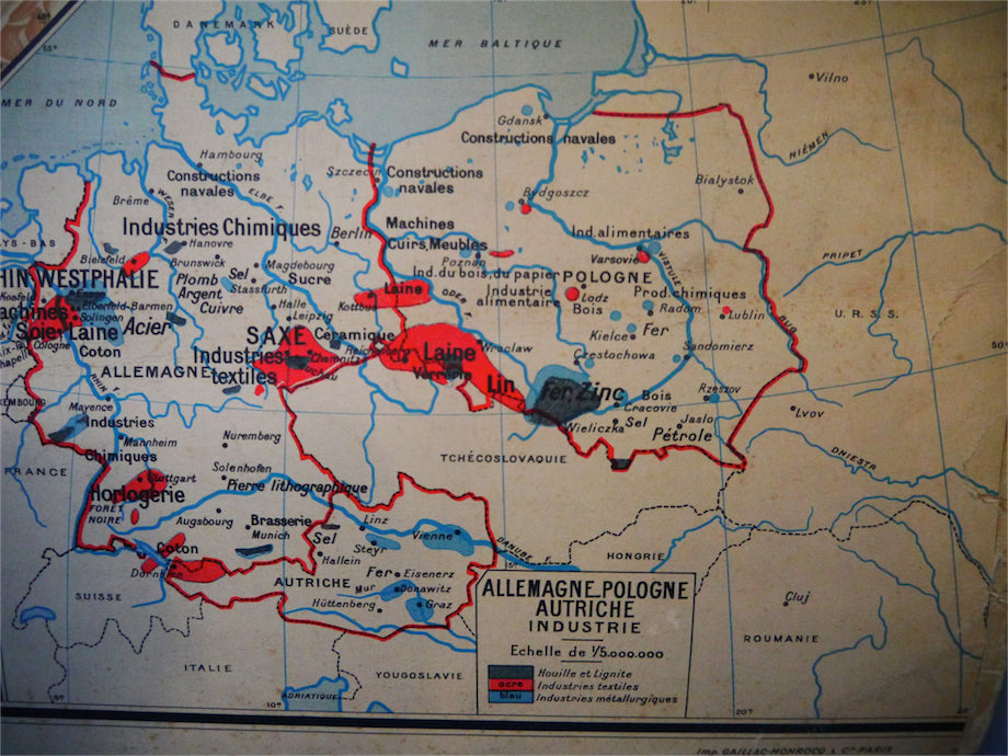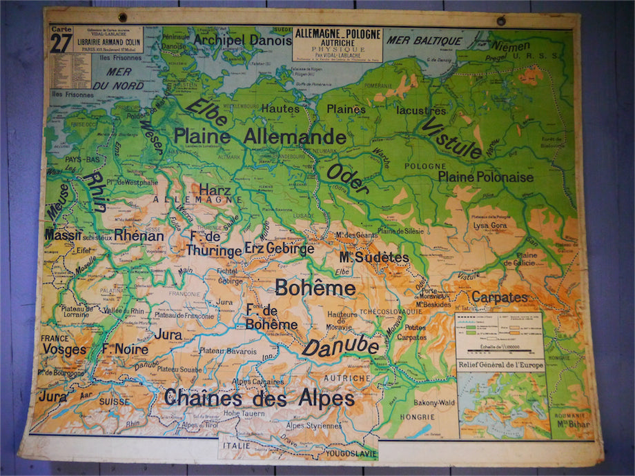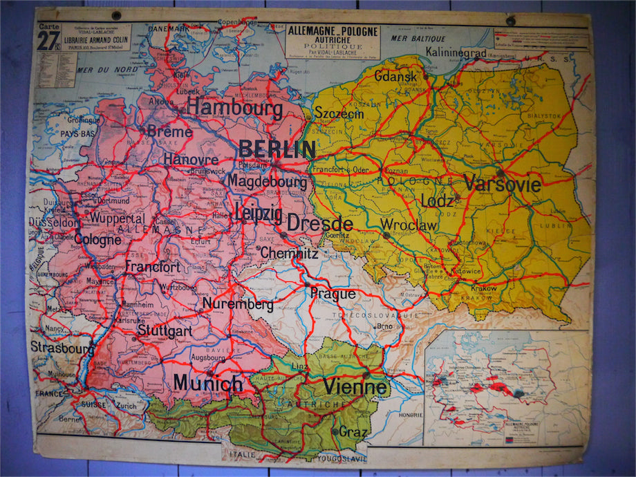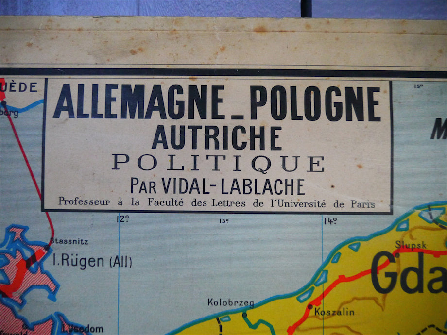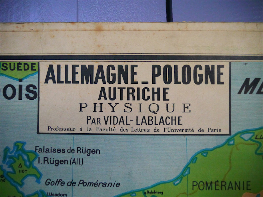 ancienne affiche scolaire Allemagne - Pologne - Autriche. Vidal Lablache