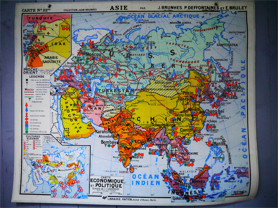 ancienne affiche scolaire Asie carte physique éditions Hatier