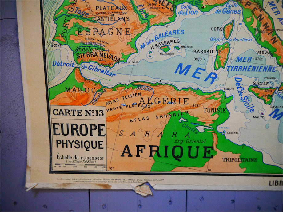 ancienne affiche scolaire Europe physique éditions Hatier