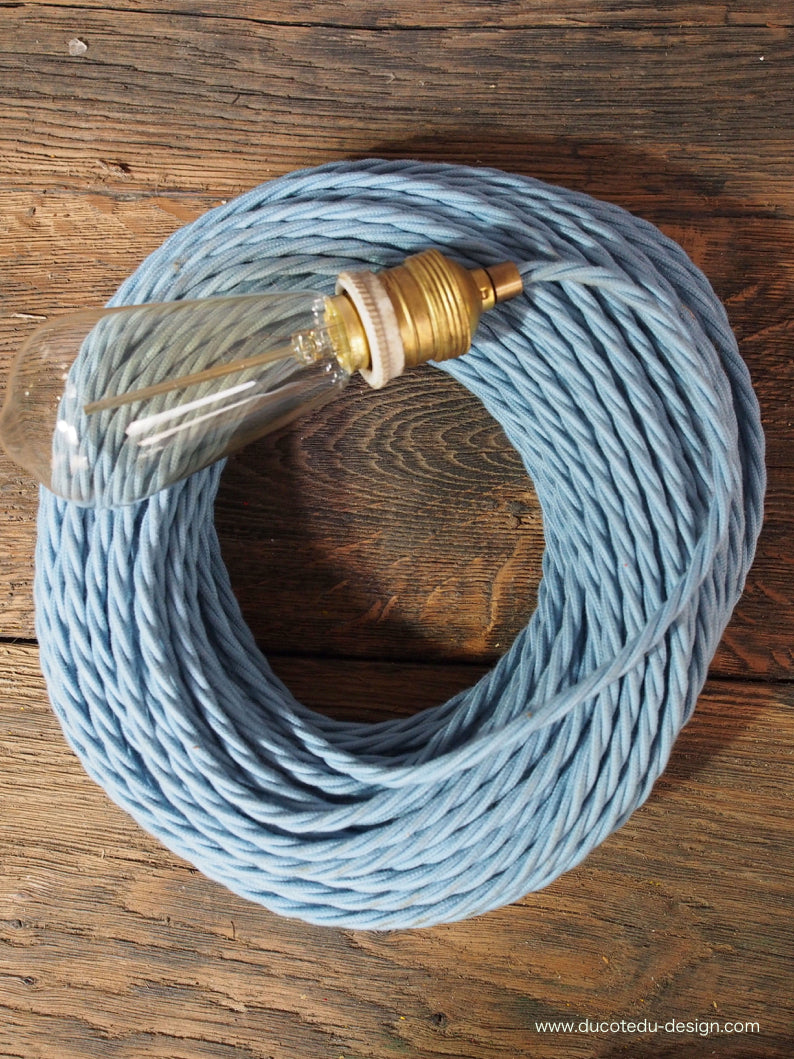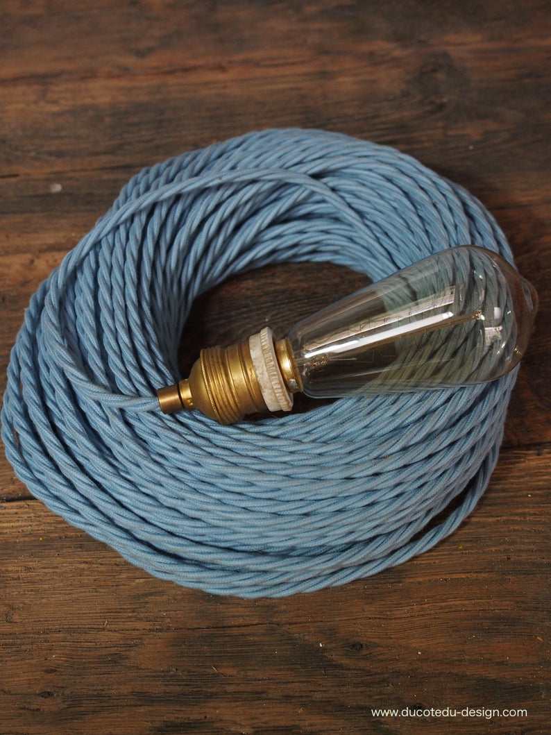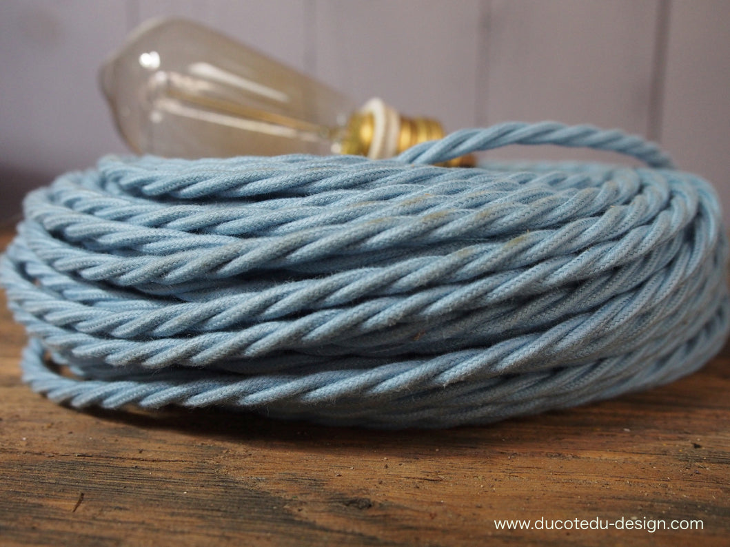 cable tissu coton bleu torsadé 2x75