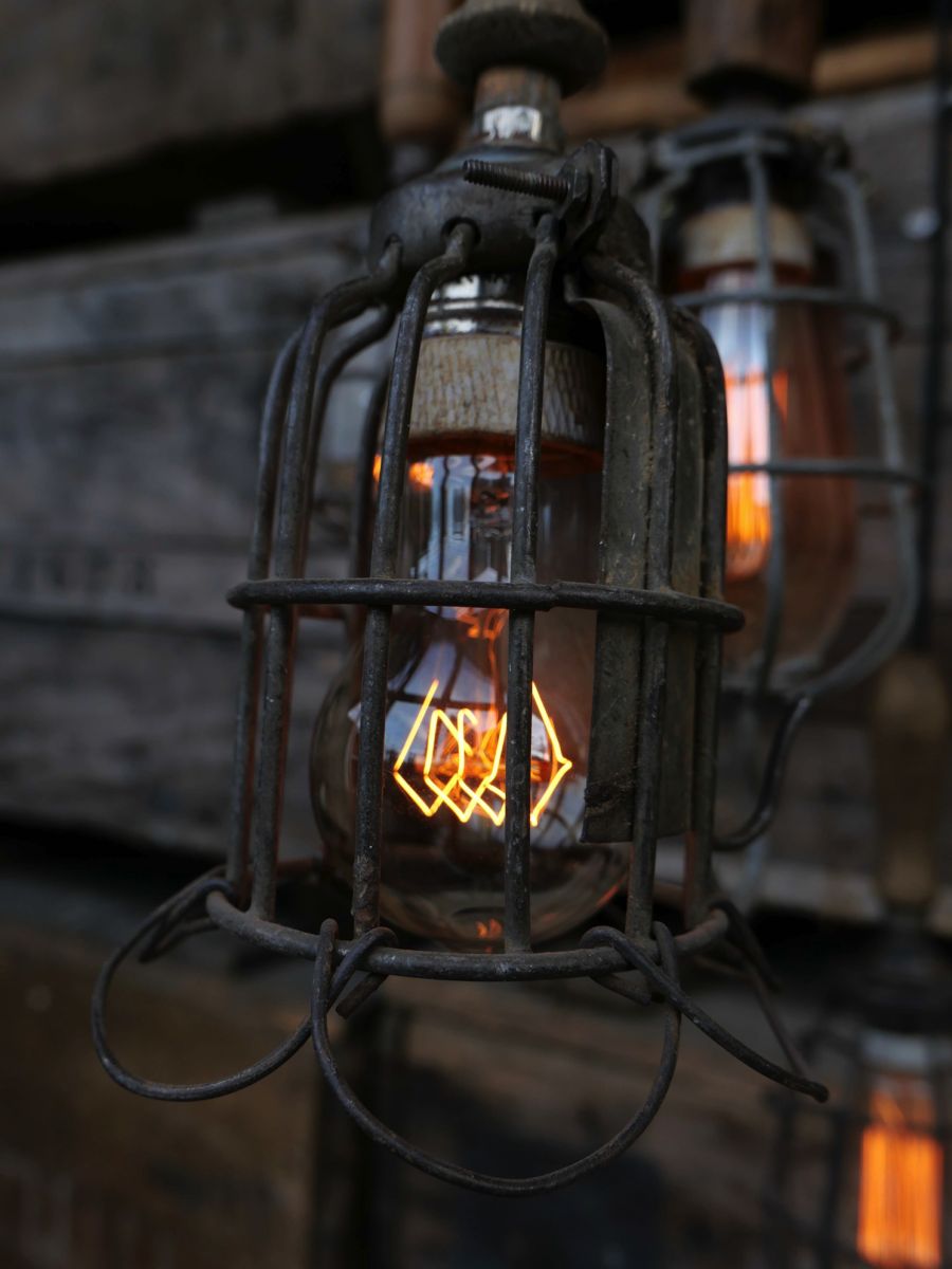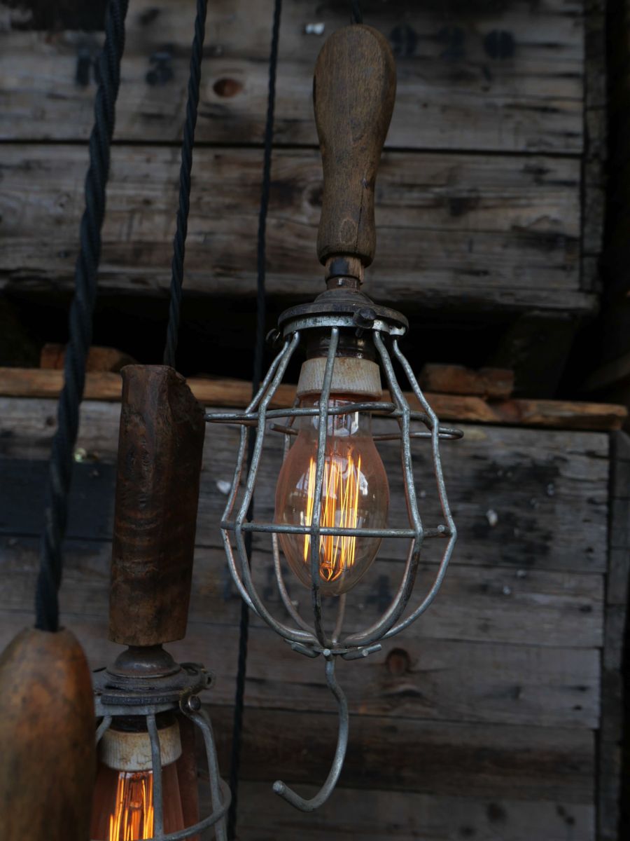 la cage en fer s'ouvre et se ferme afin de proteger l'ampoule lors des manipulations