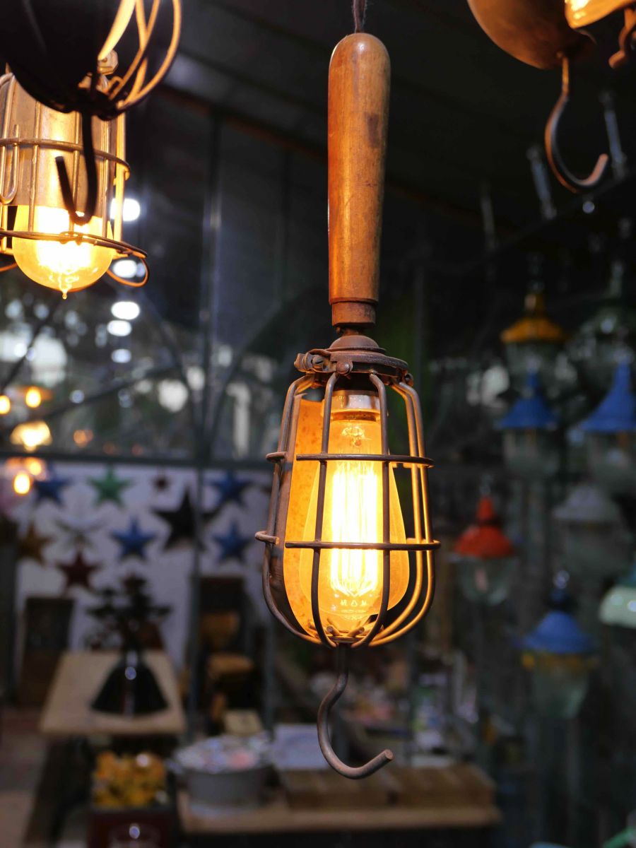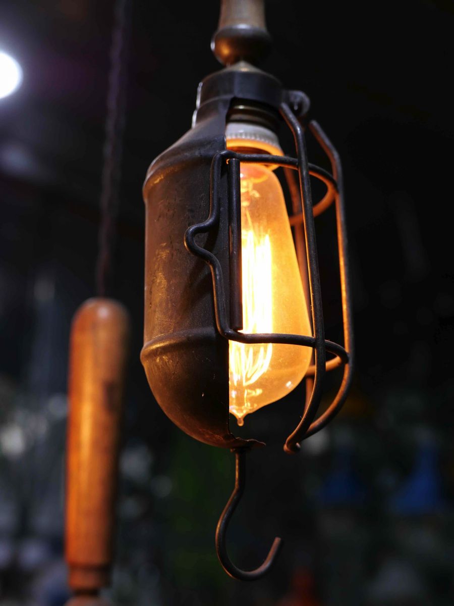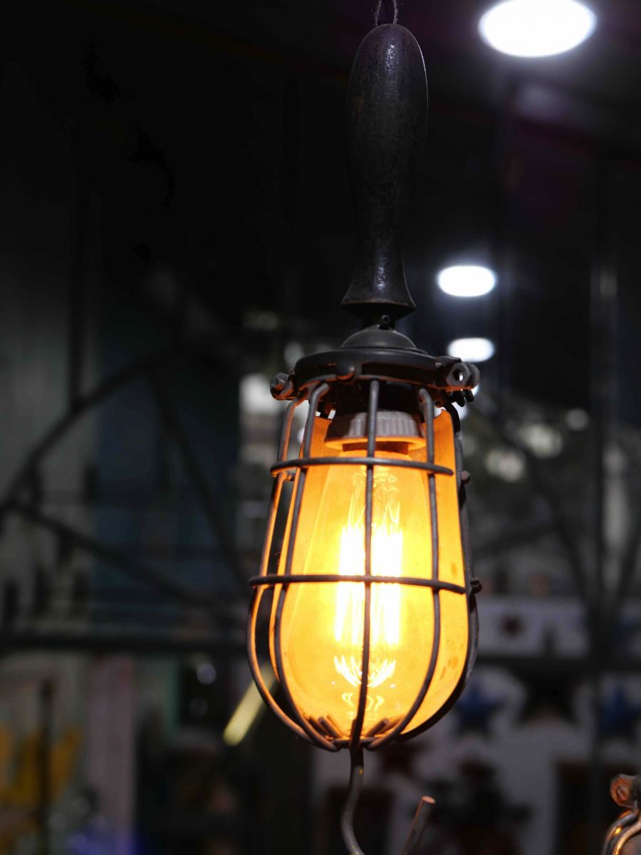 la cage en fer s'ouvre et se ferme afin de proteger l'ampoule lors des manipulations