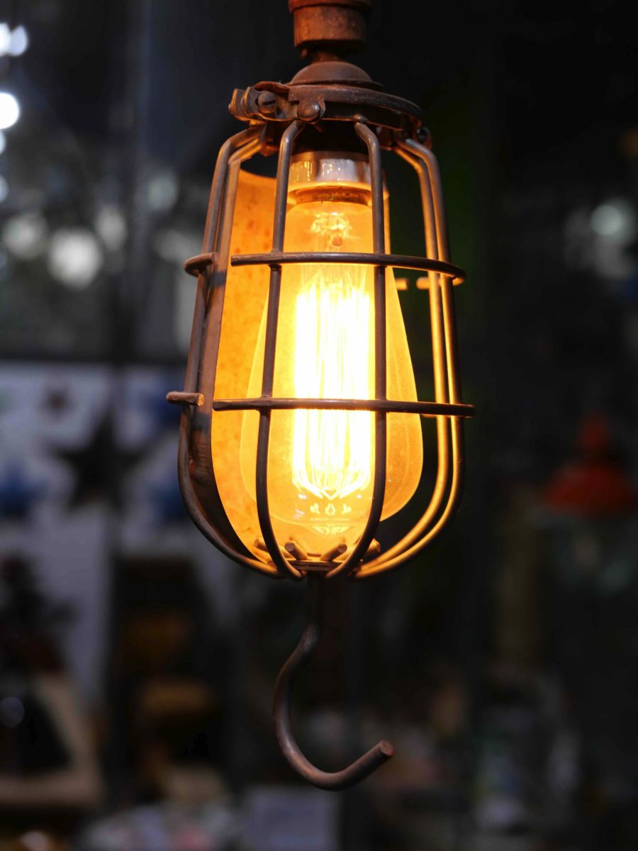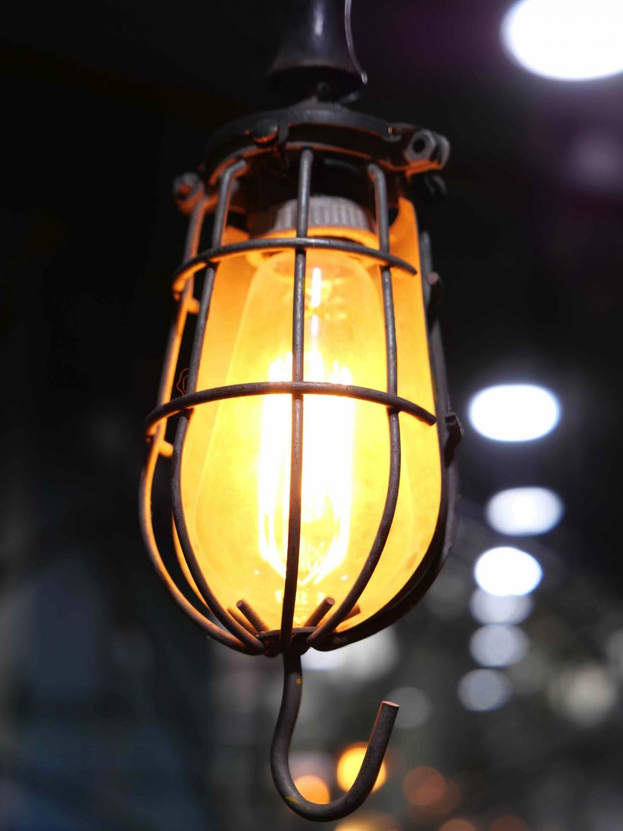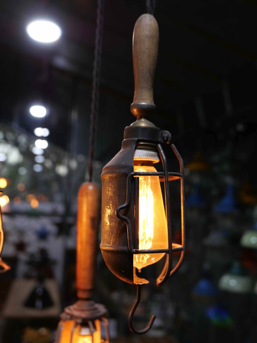 la cage en fer s'ouvre et se ferme afin de proteger l'ampoule lors des manipulations