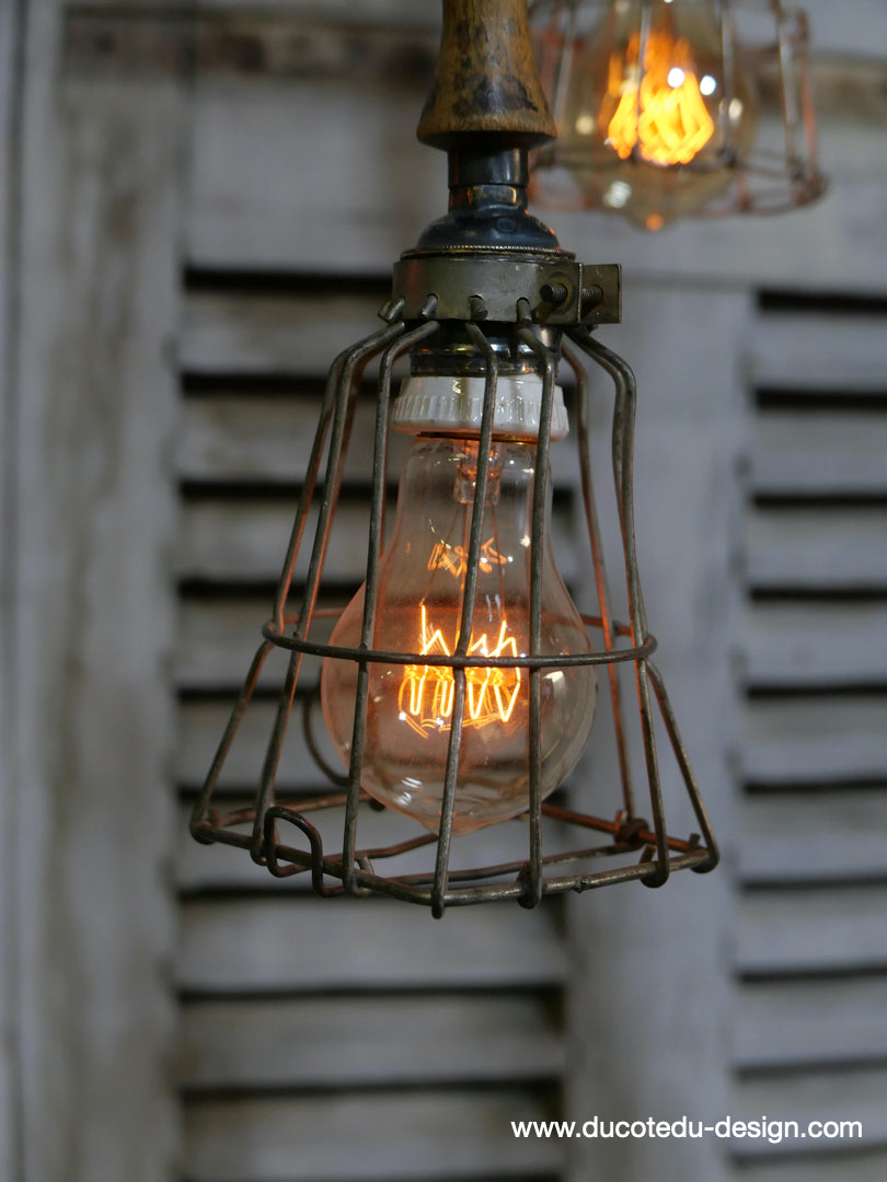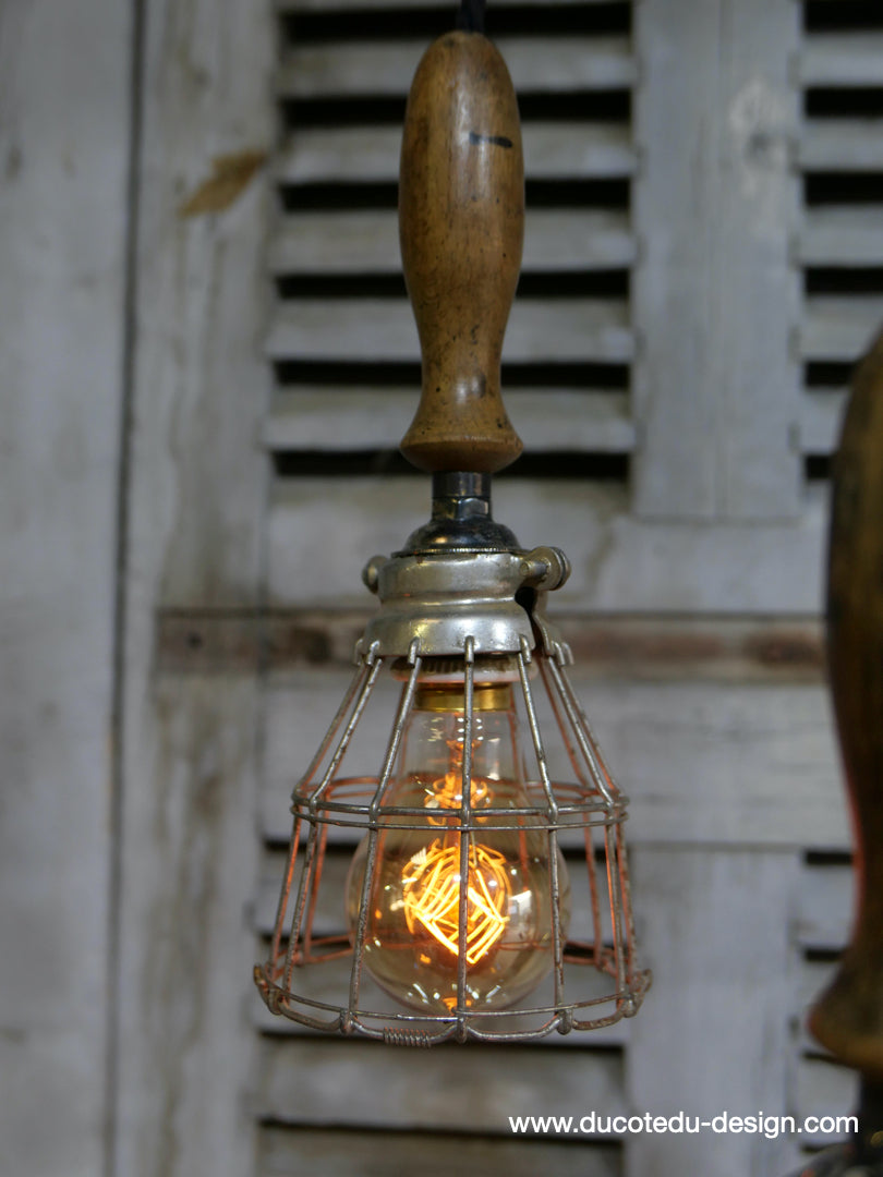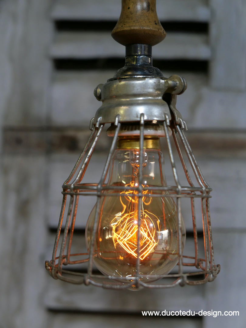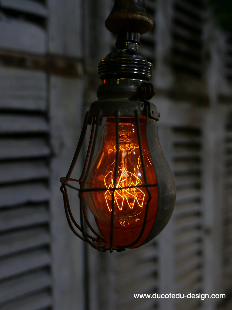 la cage en fer s'ouvre et se ferme afin de proteger l'ampoule lors des manipulations