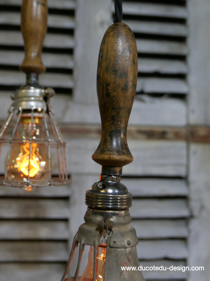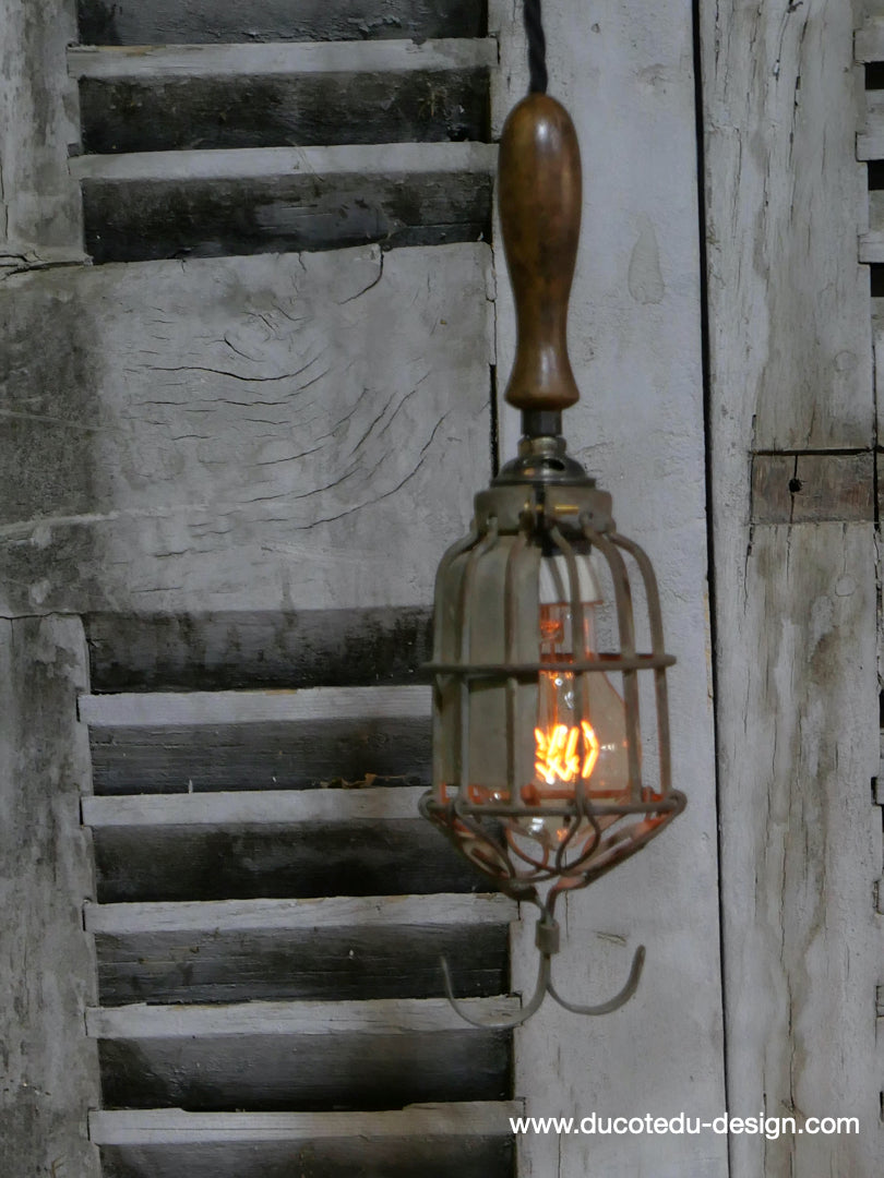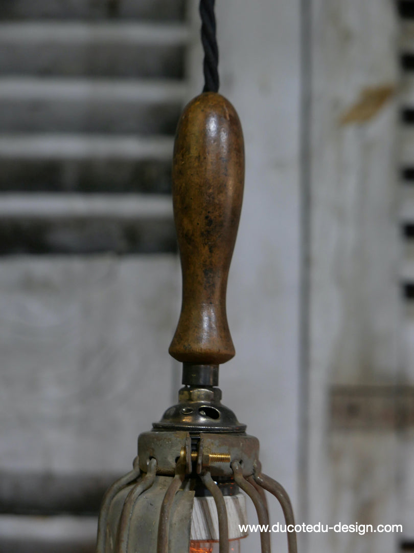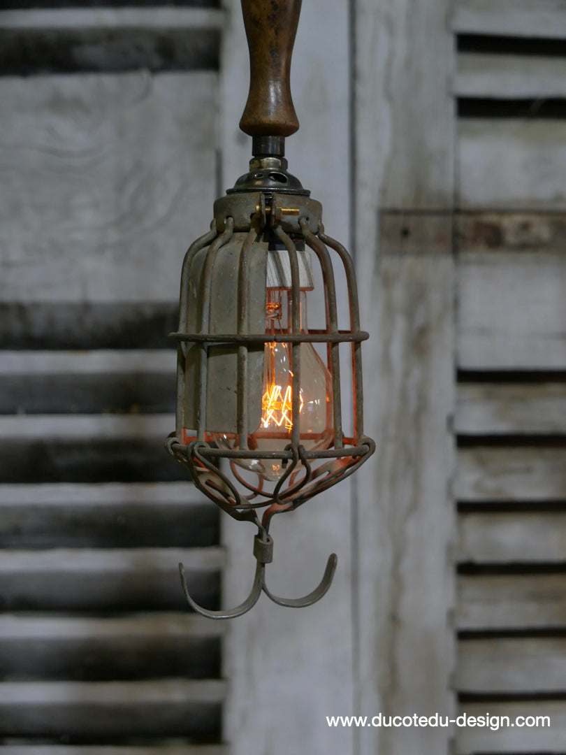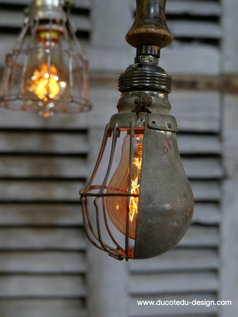 la cage en fer s'ouvre et se ferme afin de proteger l'ampoule lors des manipulations