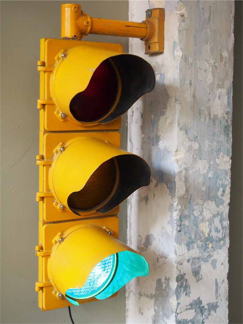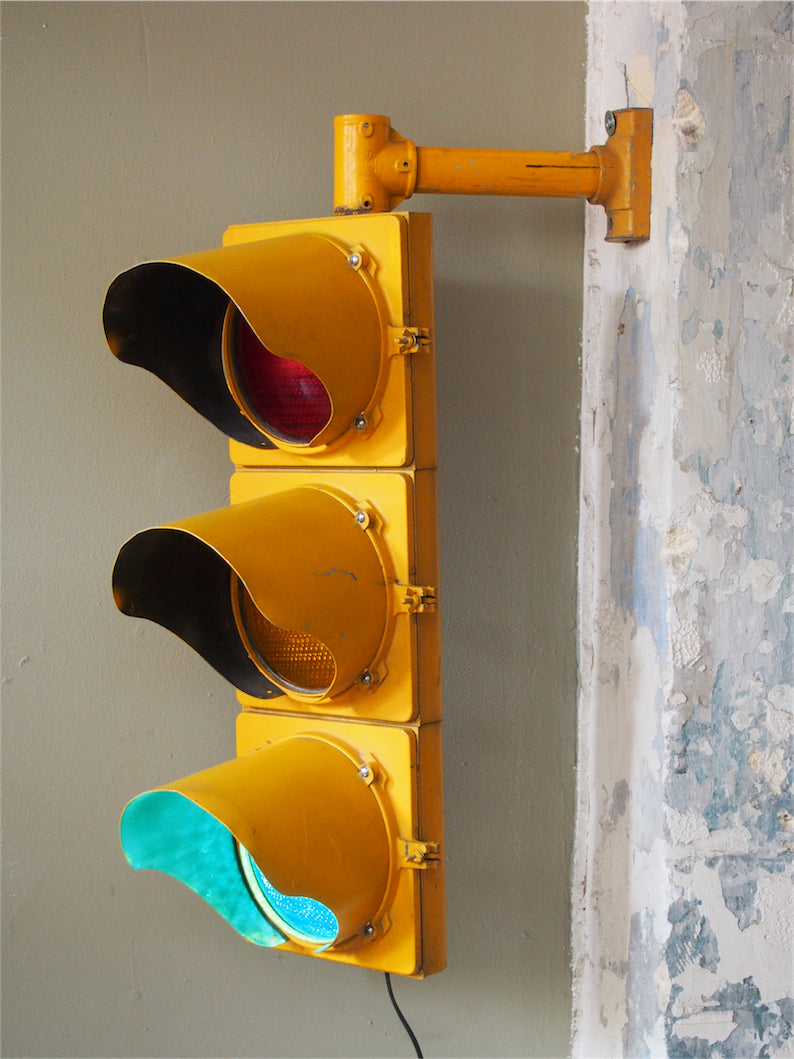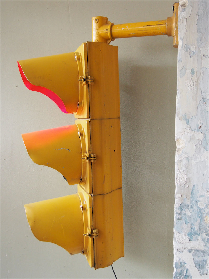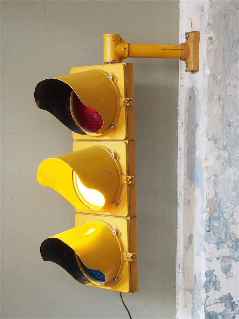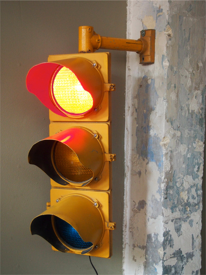 feu tricolore americain New York vintage USA jaune dans son jus avec fixation murale