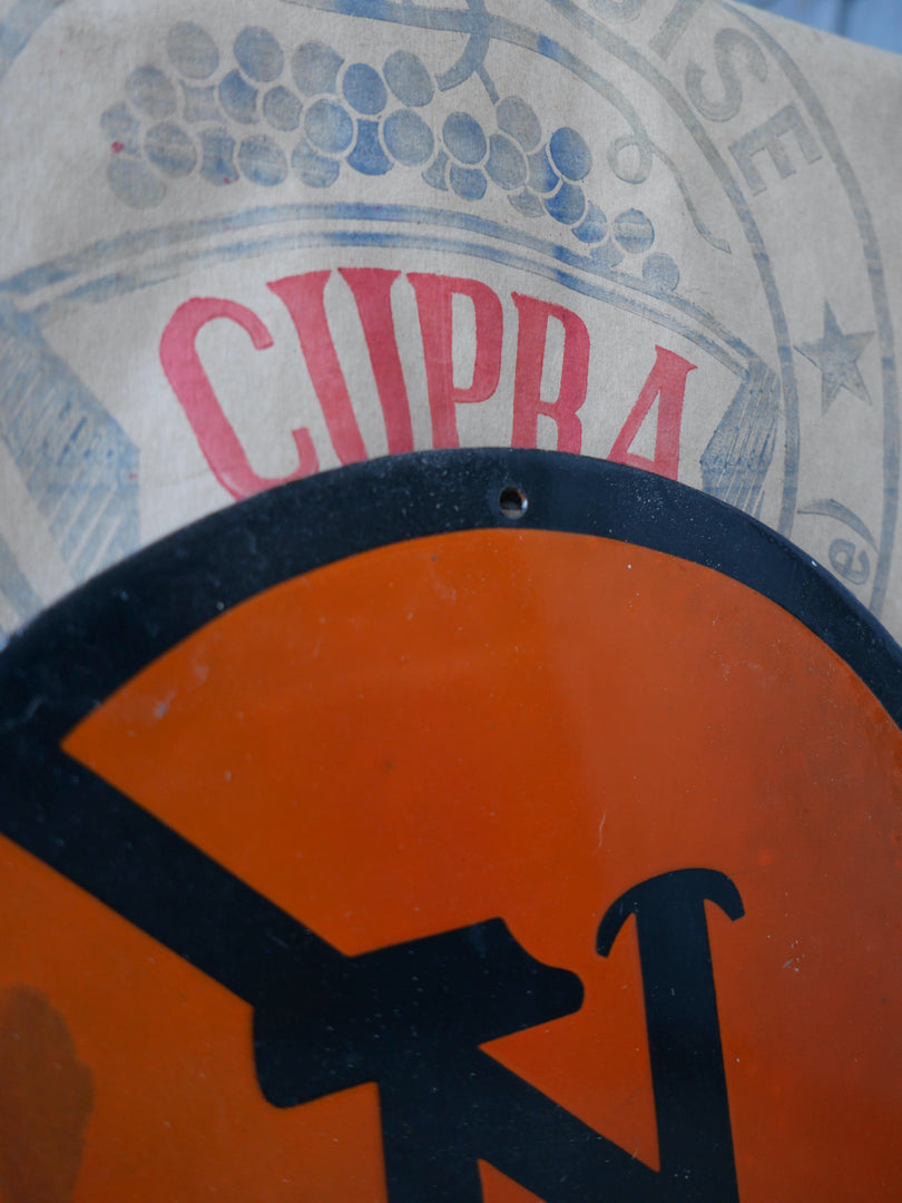 Grande plaque emaillee signalitique usine russe outils
