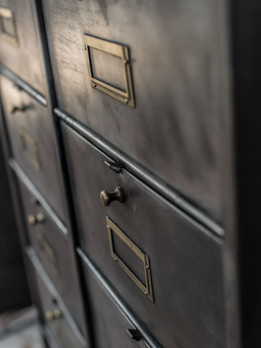 8 casiers, portes etiquette et boutons laitonnés
