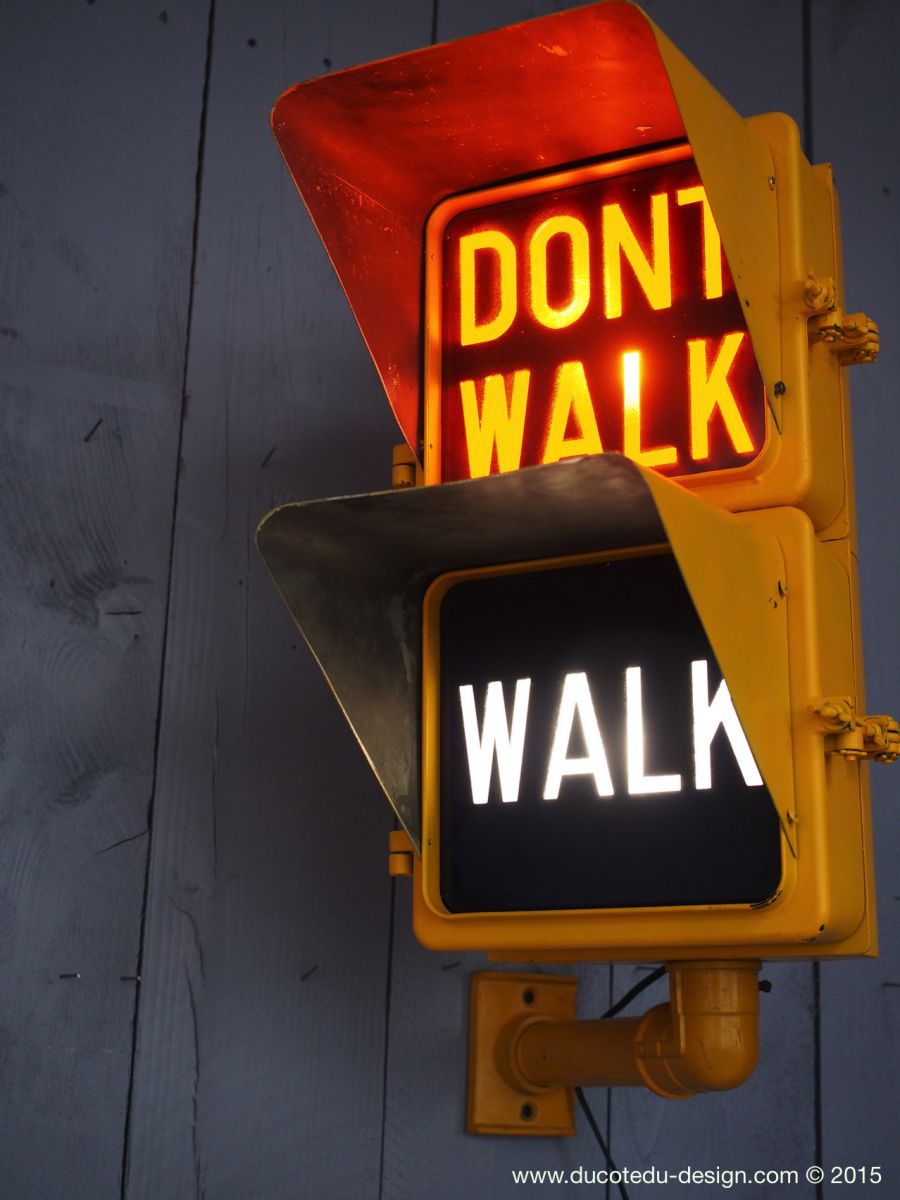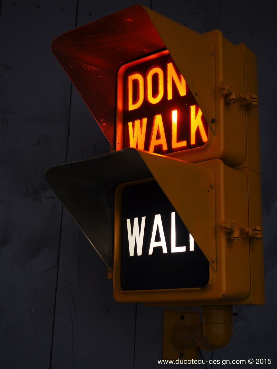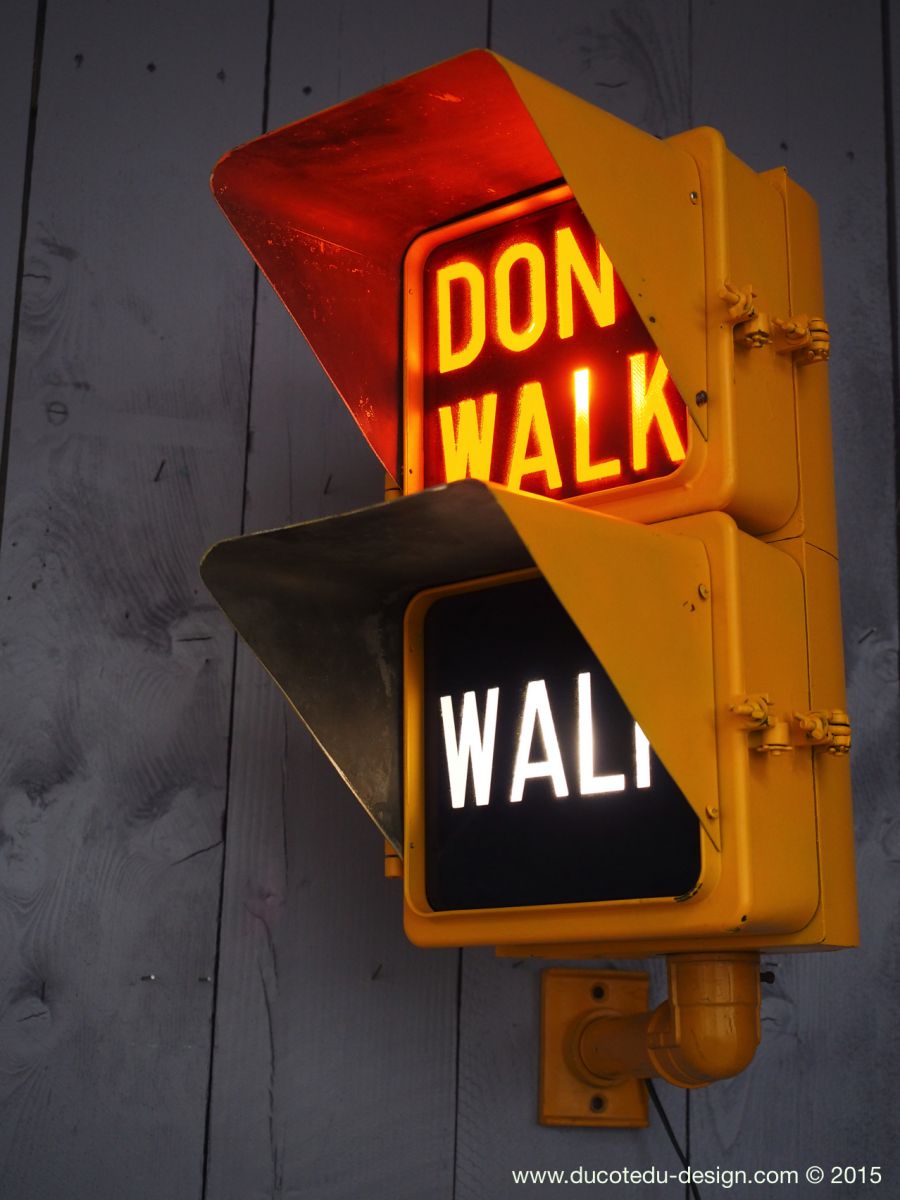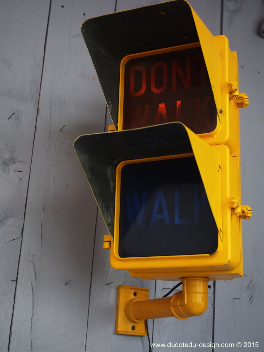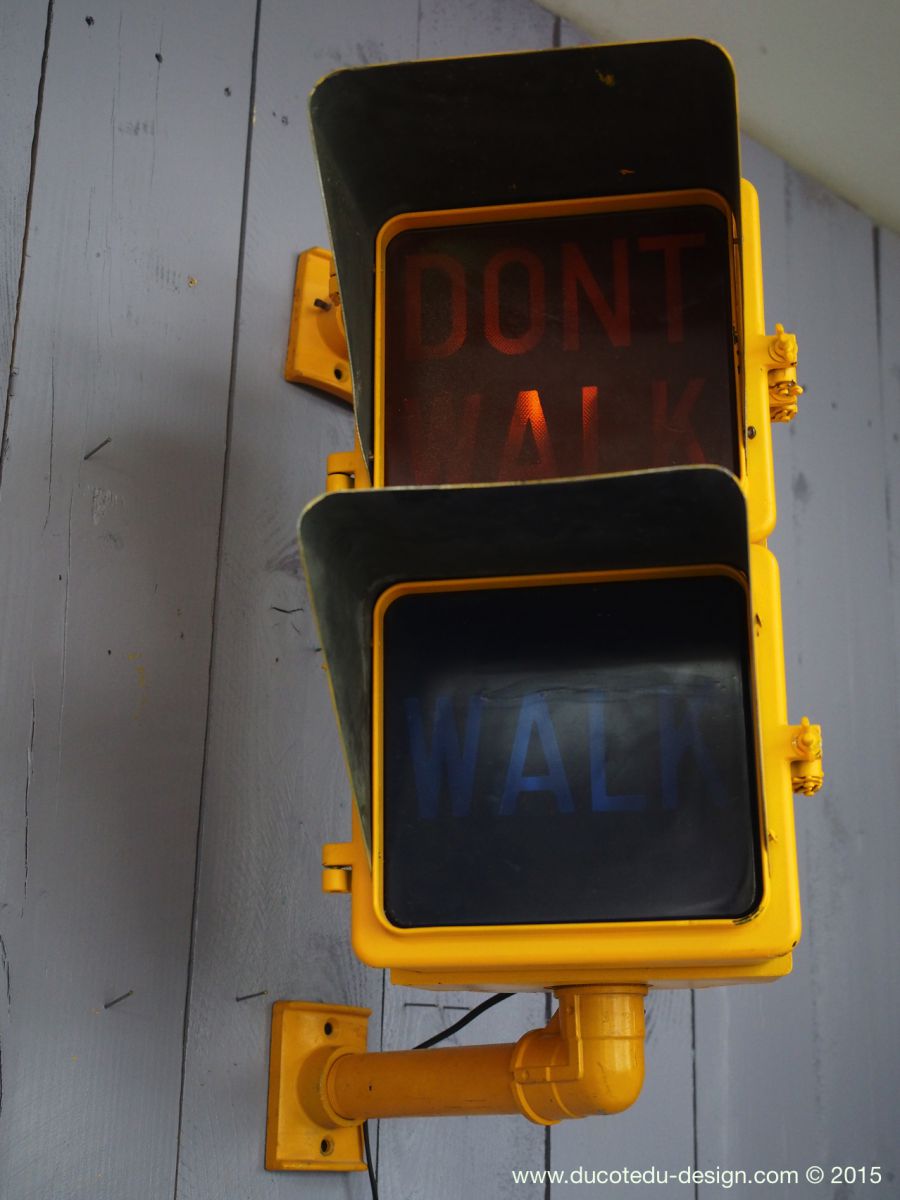 New York feu dont walk americain vintage USA jaune d'origine avec fixations murale