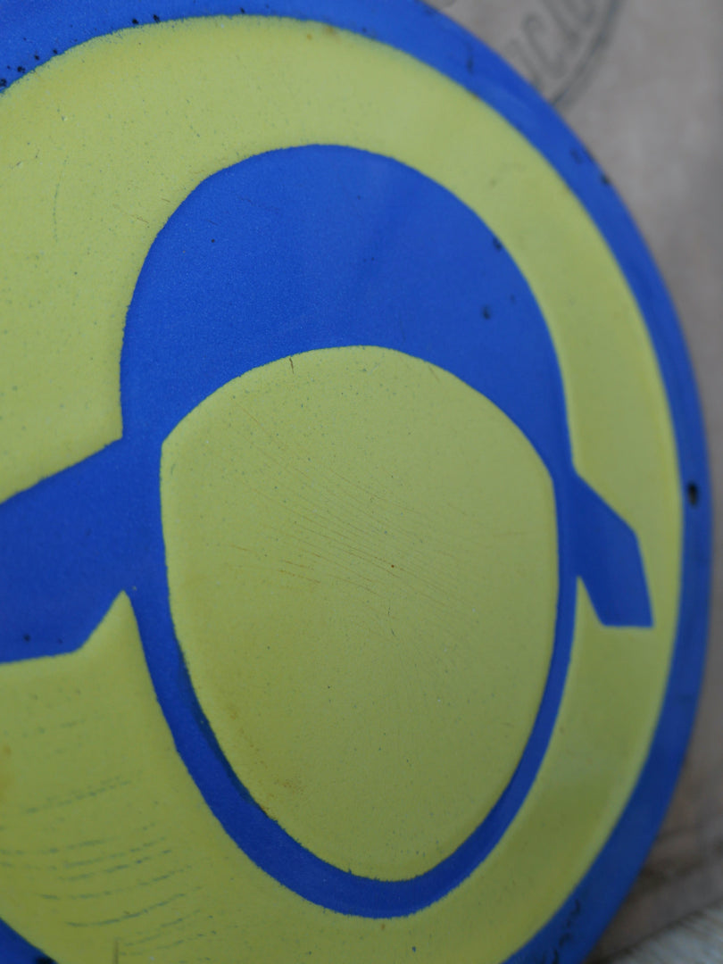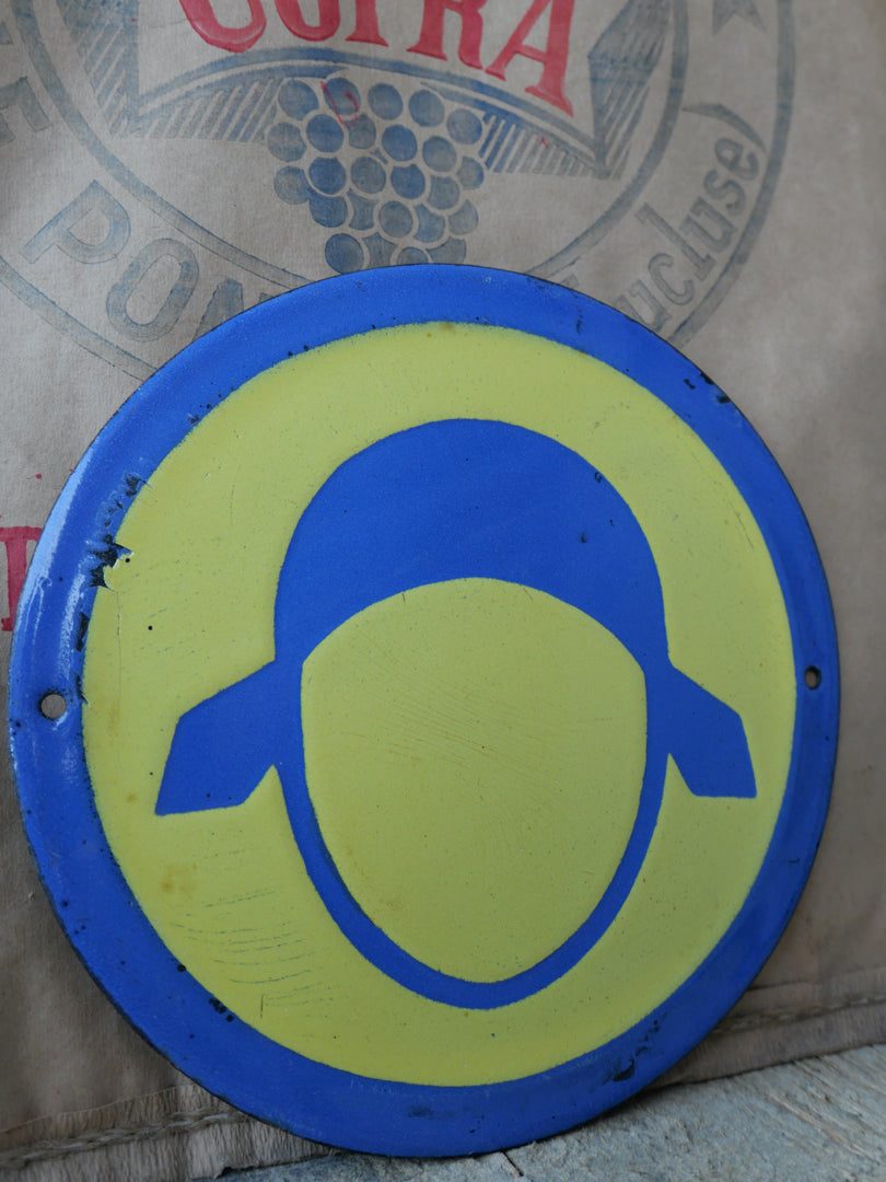 Plaque emaillee signalitique usine russe jaune chapeau