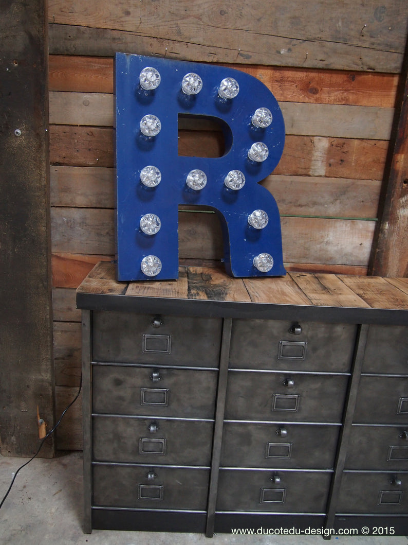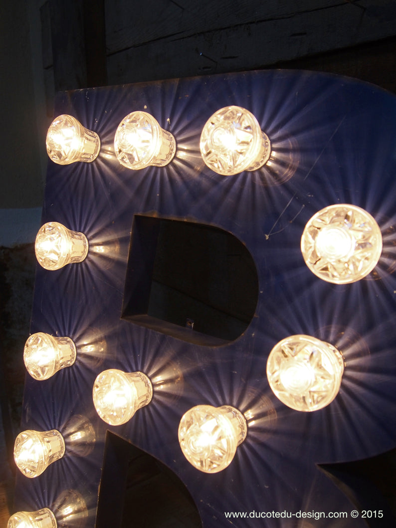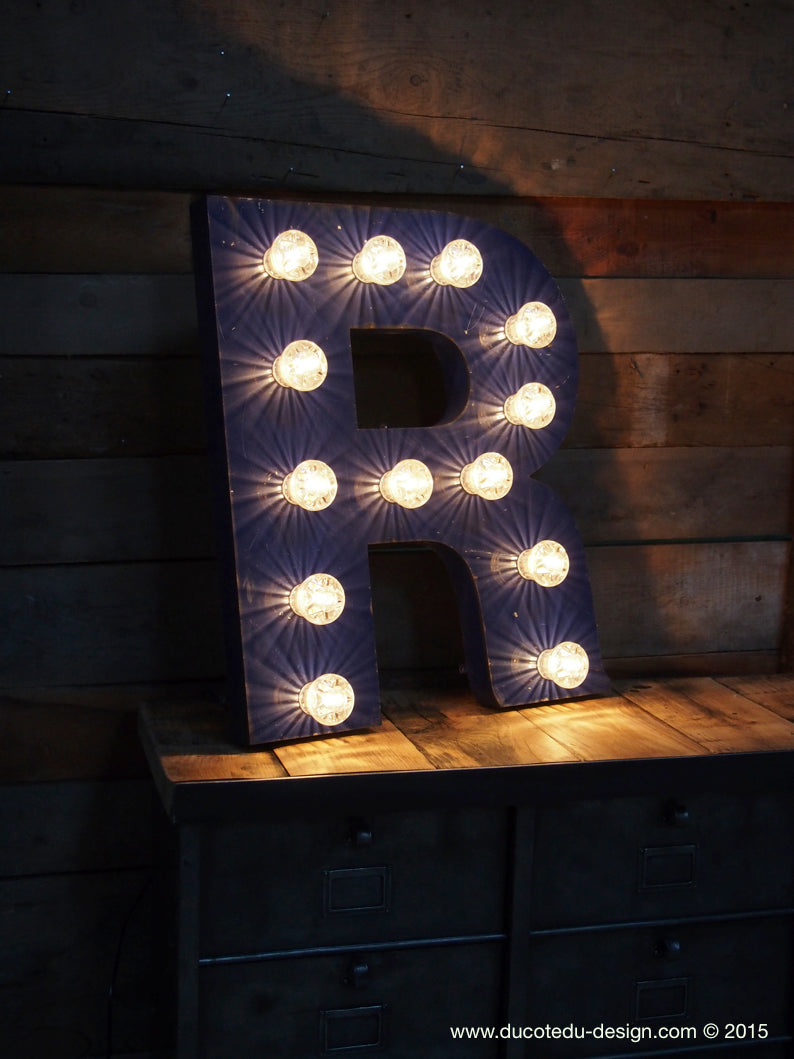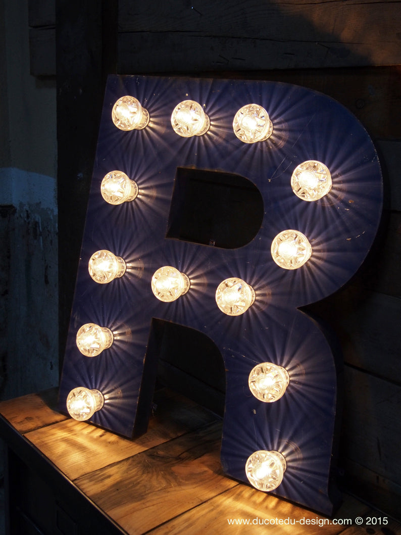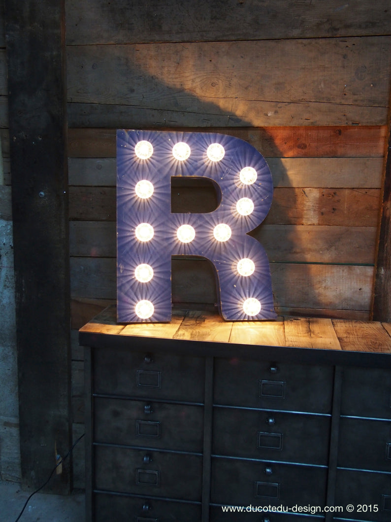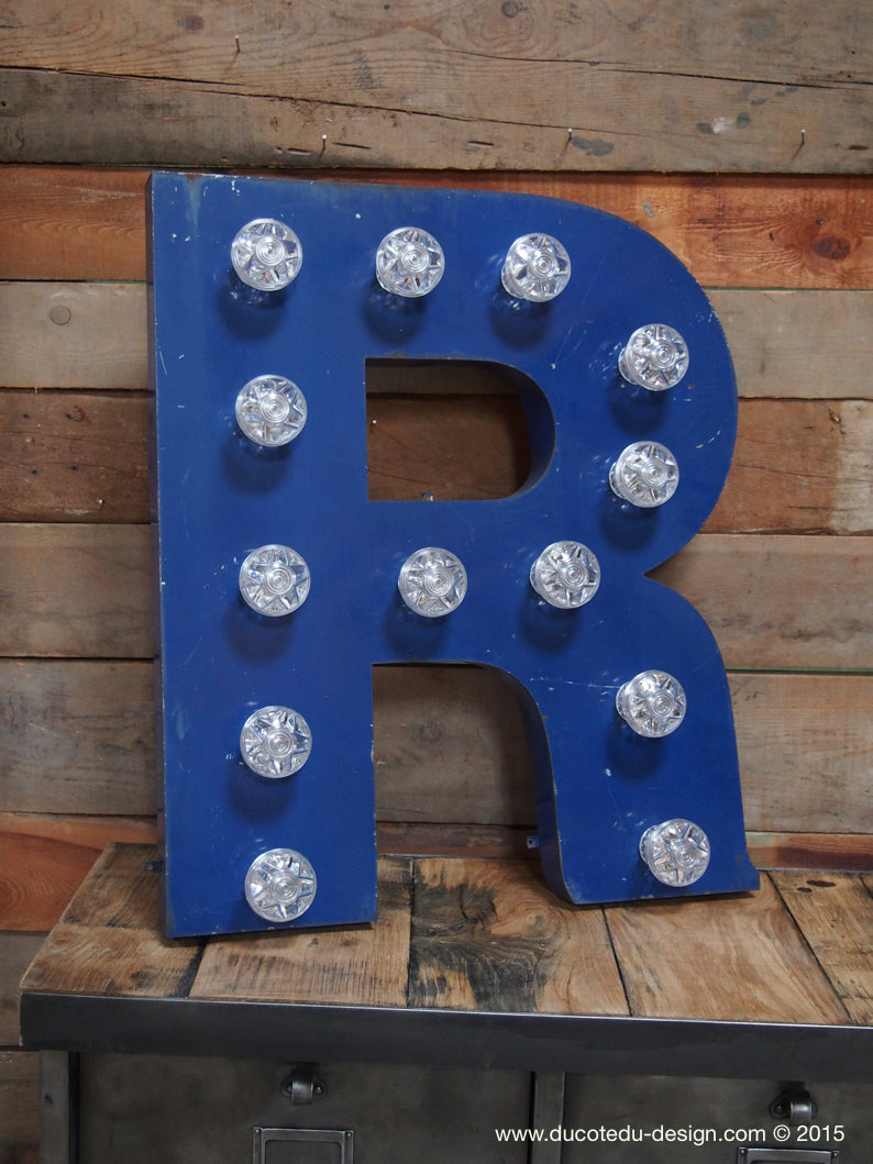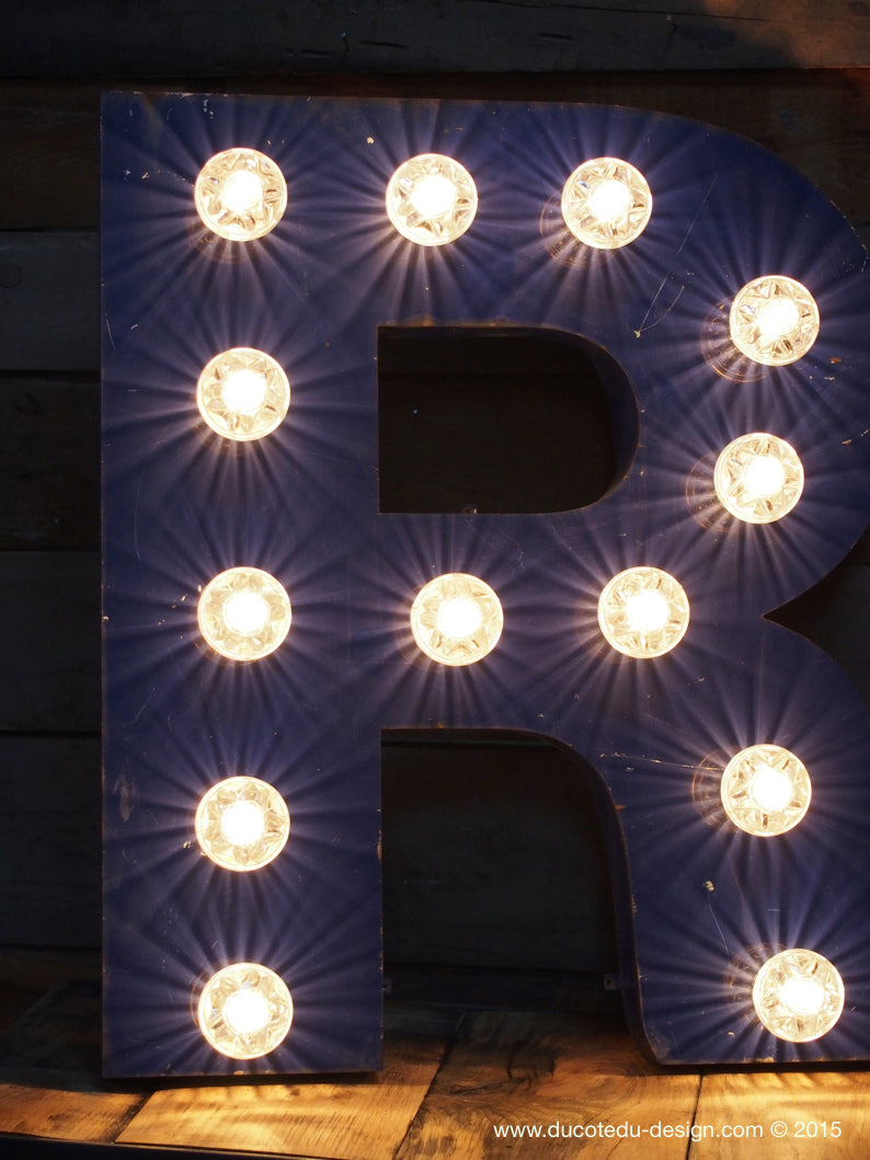 tres grande lettre R d'ancienne enseigne lumineuse façon fete foraine